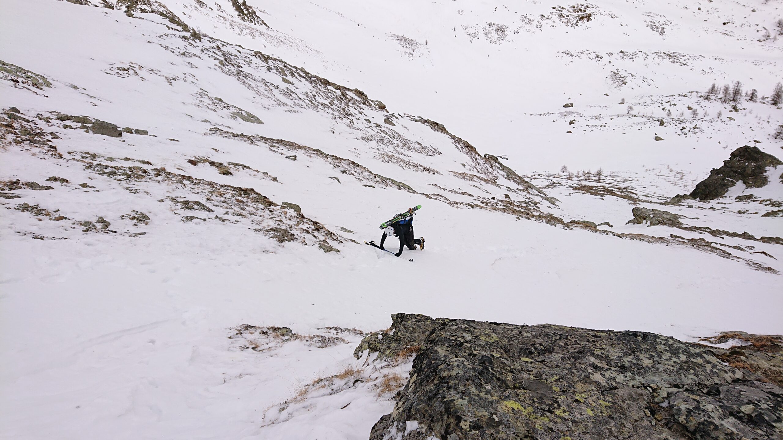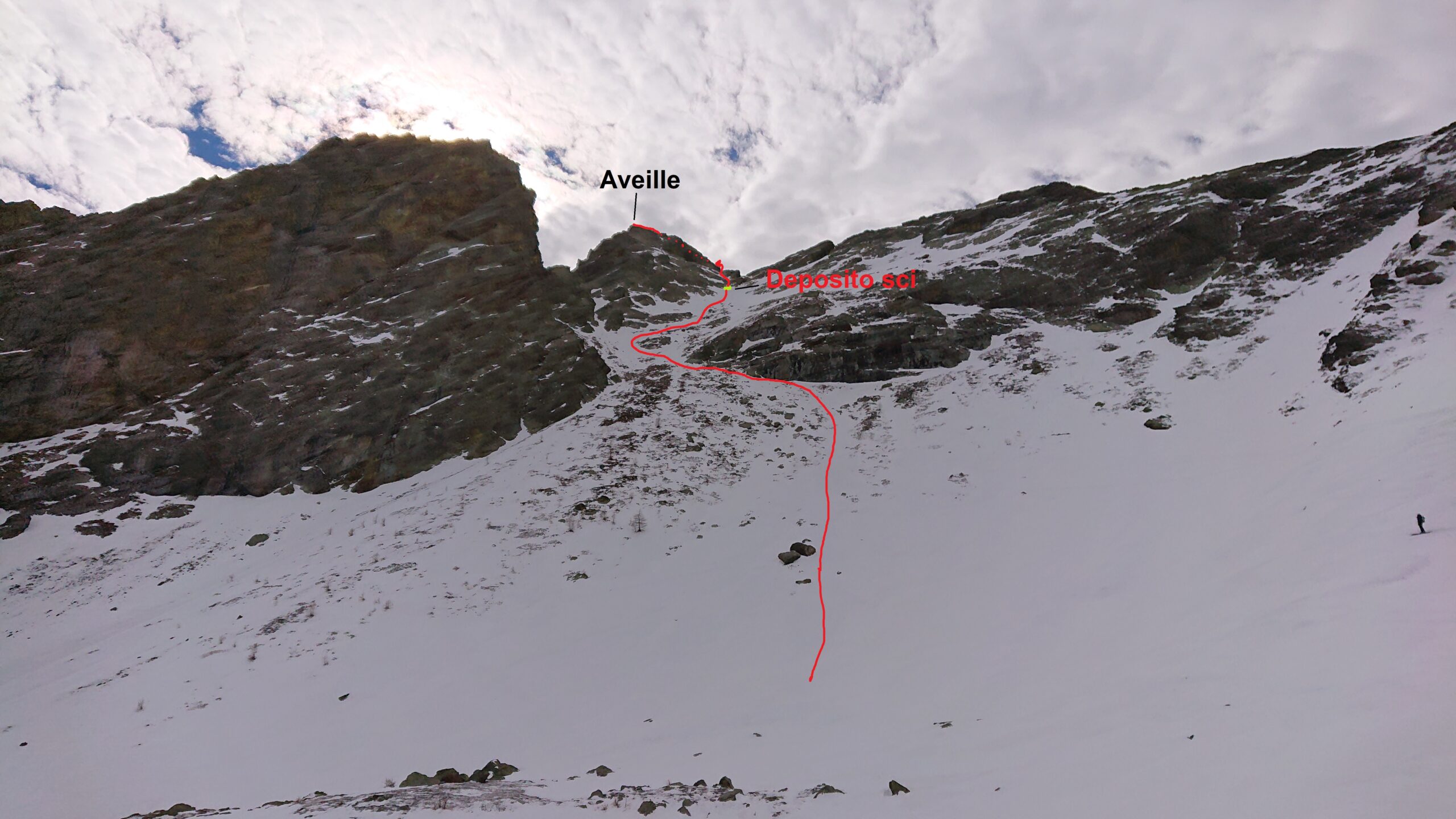 Circa 80 metri prima del ponte parte una stradina, seguirla e poi per prati si incrocia un altra stradina che ci porta agevolmente alle baite di Fontin. Si entra nel vallone e si punta alle baite diroccate di Collet, Dopo si supera un tratto pianeggiante puntando verso la base della parete da salire. Sotto la verticale della vetta si abbandona il vallone e si sale sino dove è possibile con gli sci. Attenzione, bisogna puntare alla depressione sulla destra della vetta di destra anche se quella di sinistra da sotto pare più alta. Raggiunta la cresta si prosegue più agevolmente sul lato sud della medesima e in pochi minuti si raggiunge la panoramica vetta.