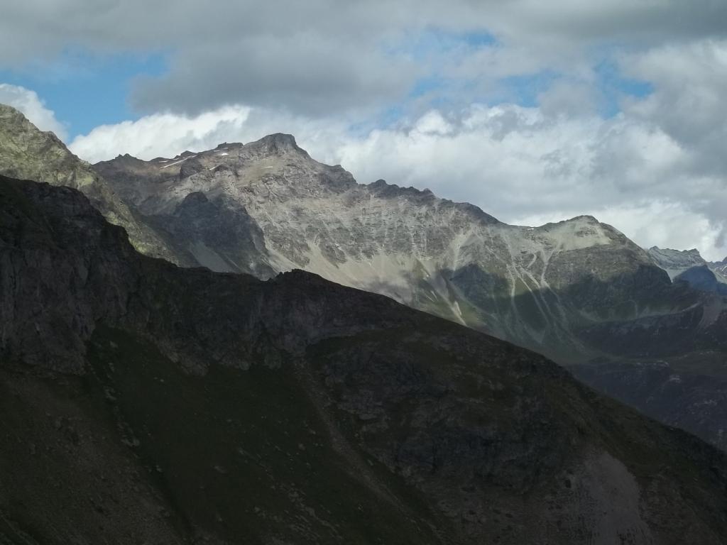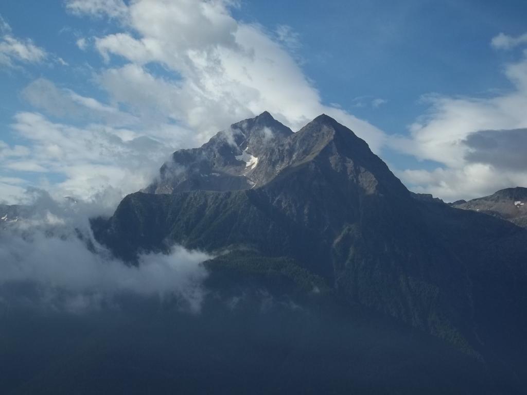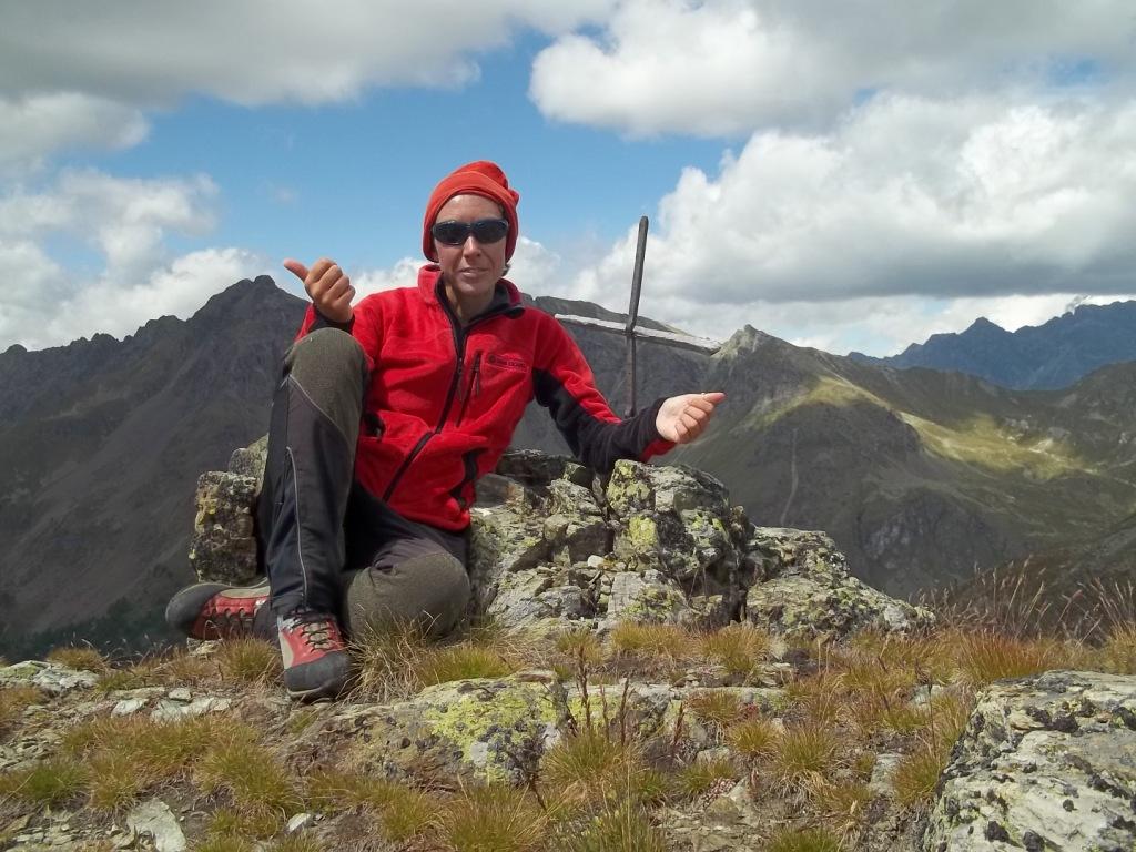 NON ME NE VOGLIANO Enzo e Gianmario (salito pero’ da Clemensod), se mi sono permessa di mettere una variante EE, ma il primo passaggio di cresta appena dopo l’anticima, molto aereo e, non riuscendo a vedere oltre, non me la sono sentita di affrontarlo e così mi e’ cascato l’occhio giusto su quella sorta di comodo terrazzino che taglia tutto a mezzacosta l’anticima e la cresta esposta, permettendo di arrivare comodamente alla vetta.