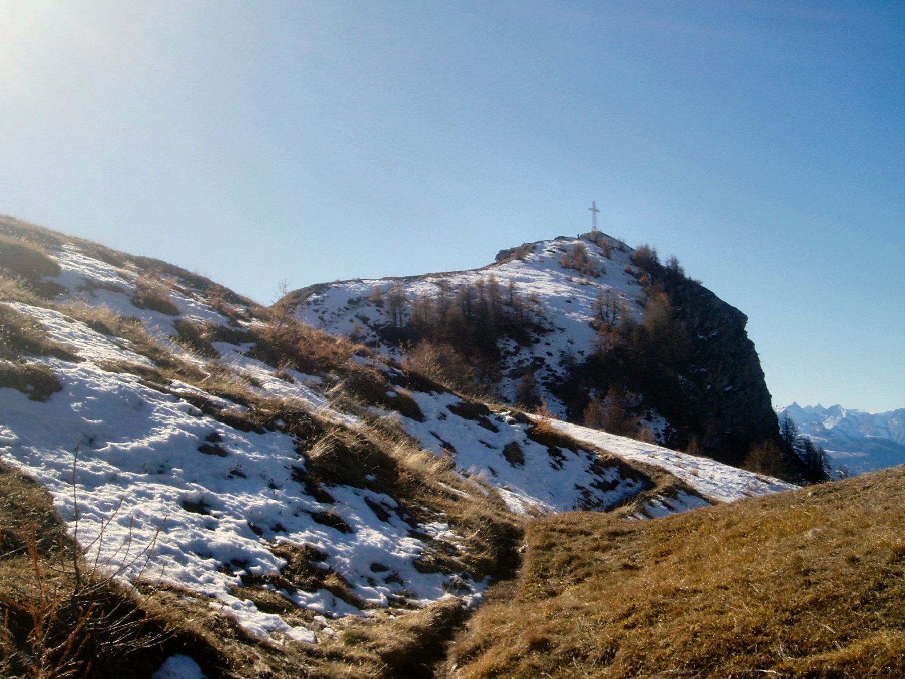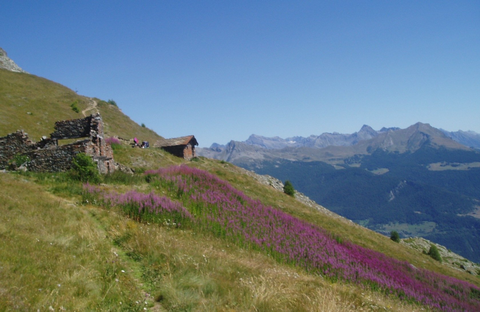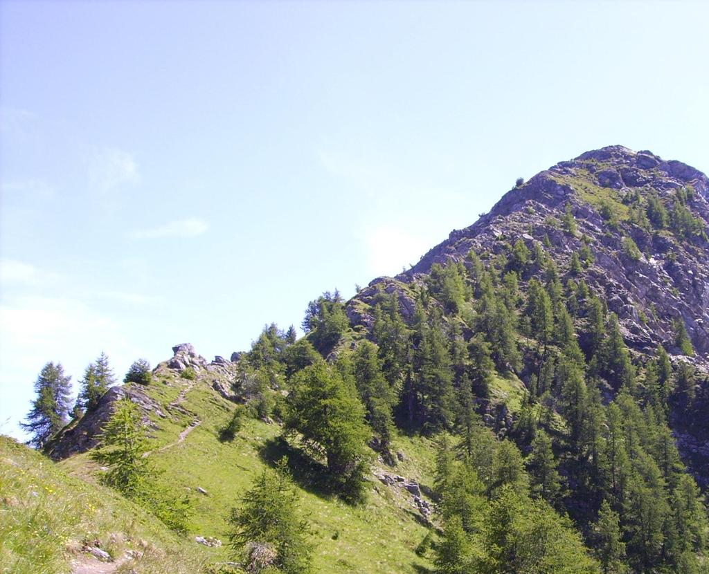 Il sentiero prosegue ora sulla dx della cresta , raggiunge una baita e un bivio (2360 m); si lascia a dx il sentiero che porta in cima alla Becca d’Aver e si prende il sentiero di sx che a mezza costa passa attraverso dei paravalanghe e si porta in cresta sotto la cima Longhede che si raggiunge con una breve e facile salita (2416 m) 1 ora dopo aver lasciato la macchina.Dalla cima della Longhede il panorama spazia dal gruppo dell’Emilius , alla Tersiva , al vallone di St. Barthelemy .