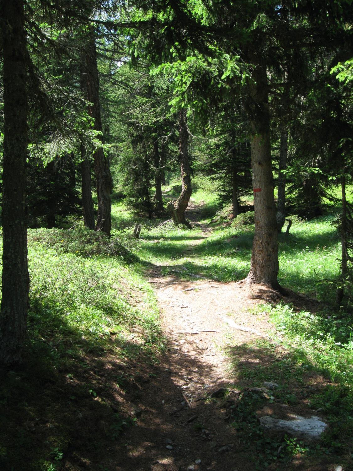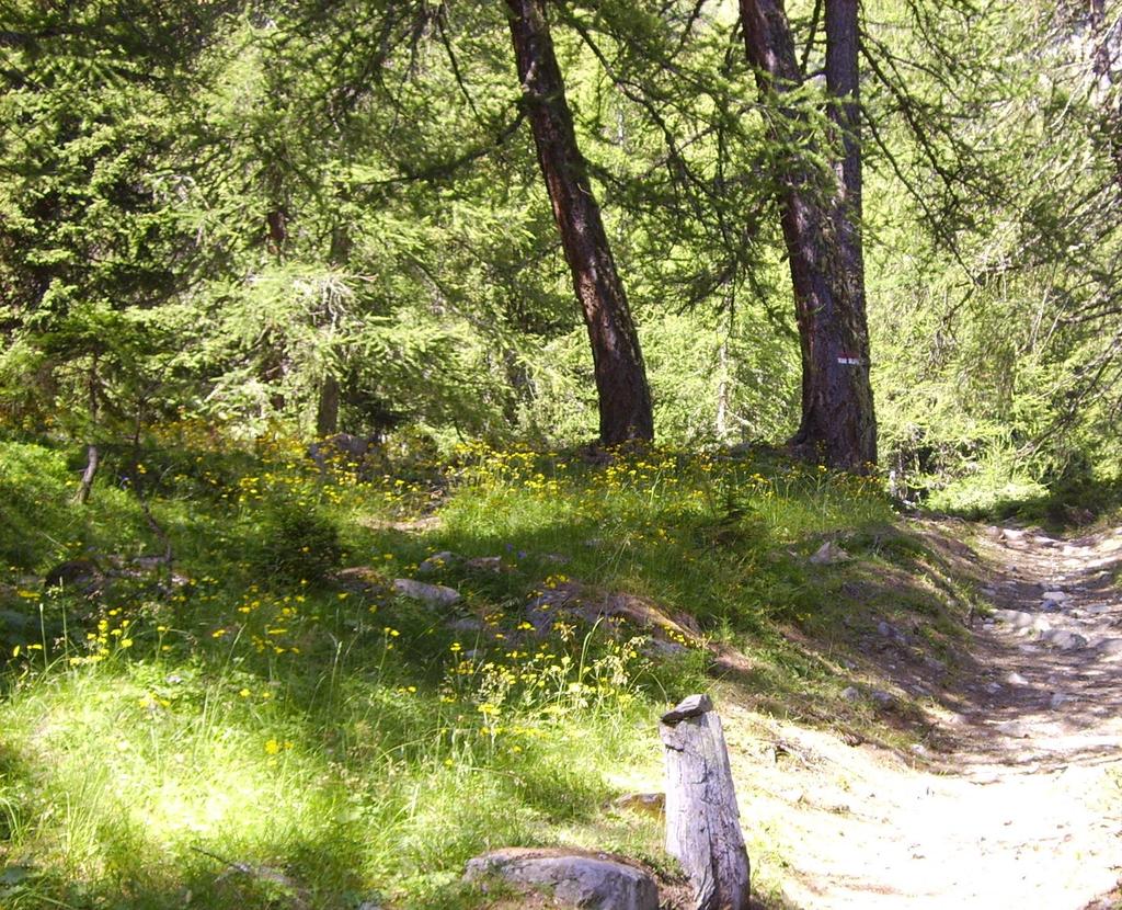 Al colle si prende il sentiero di dx e si scende nello splendido bosco, arrivando in breve tempo nella conca di Chantornè e alla macchina .