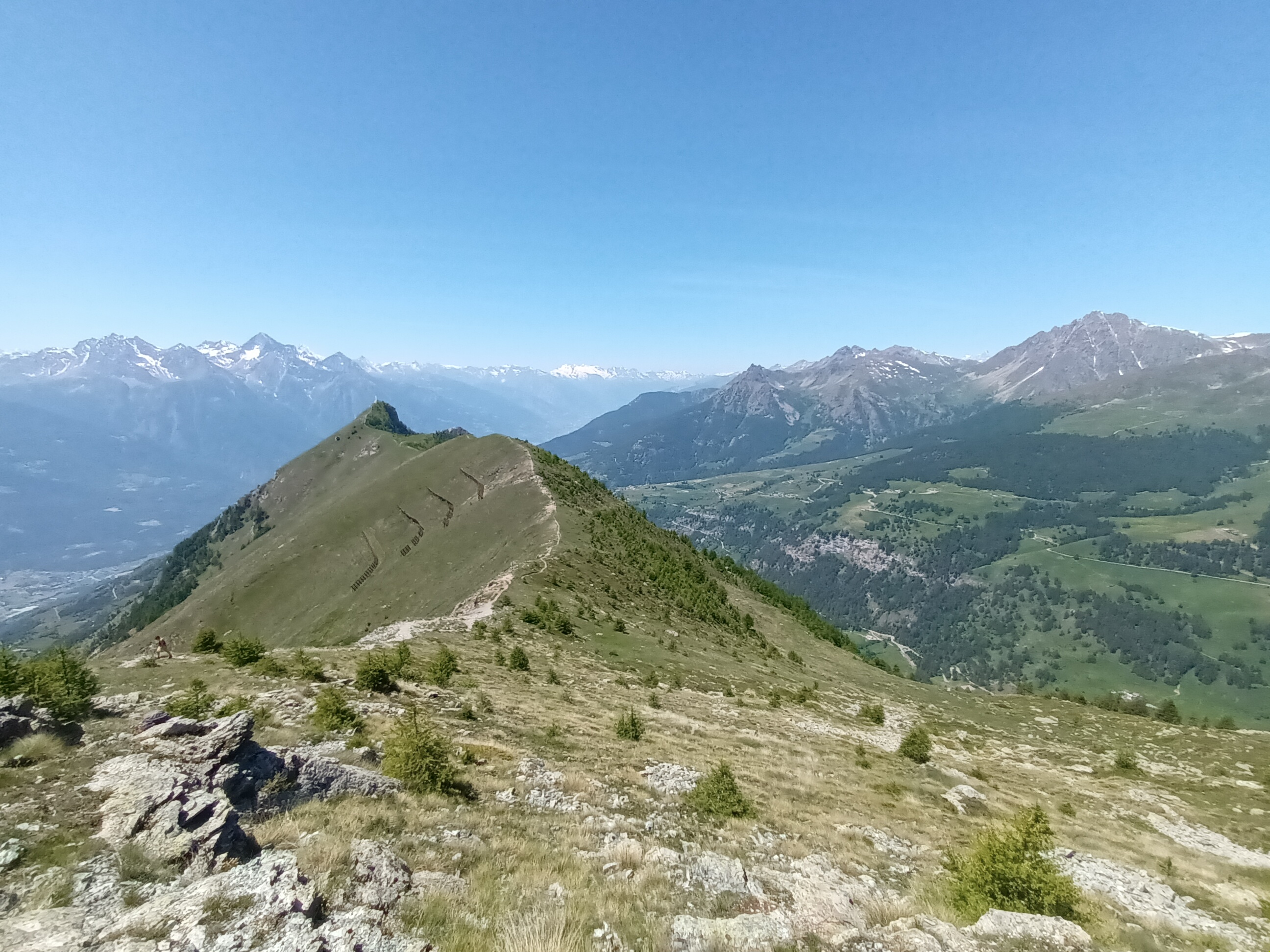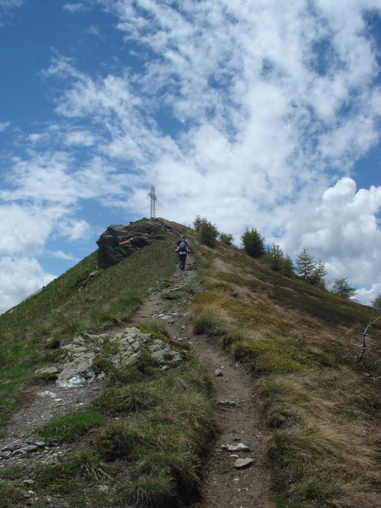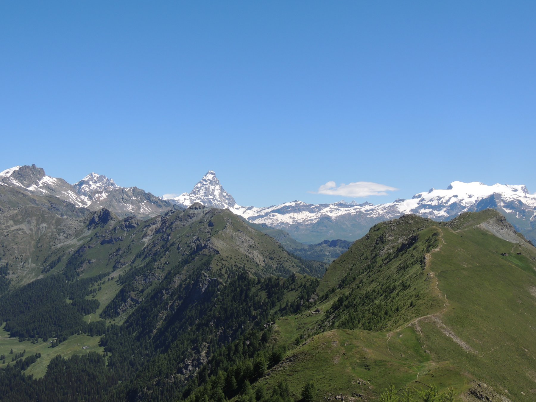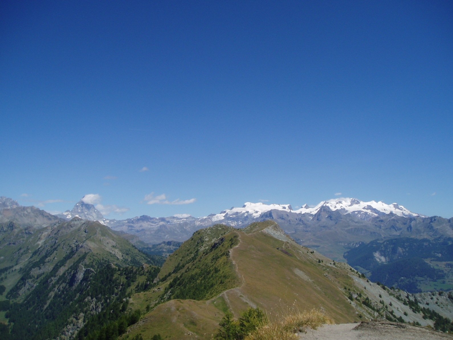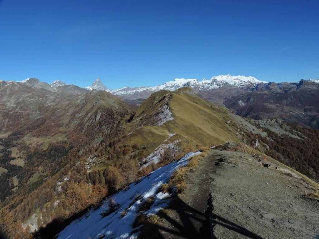 Si scende dalla cima Longhede e si prosegue sulla cresta su sentiero ben tracciato fino ad arrivare in circa 1/2 ora sulla cima della Becca d’Aver (2469 m) dove il panorama a 360° si apre sull’intera Valtournanche , sul Cervino , sullo Zerbion e sull’intero vallone di St. Barthelemy .