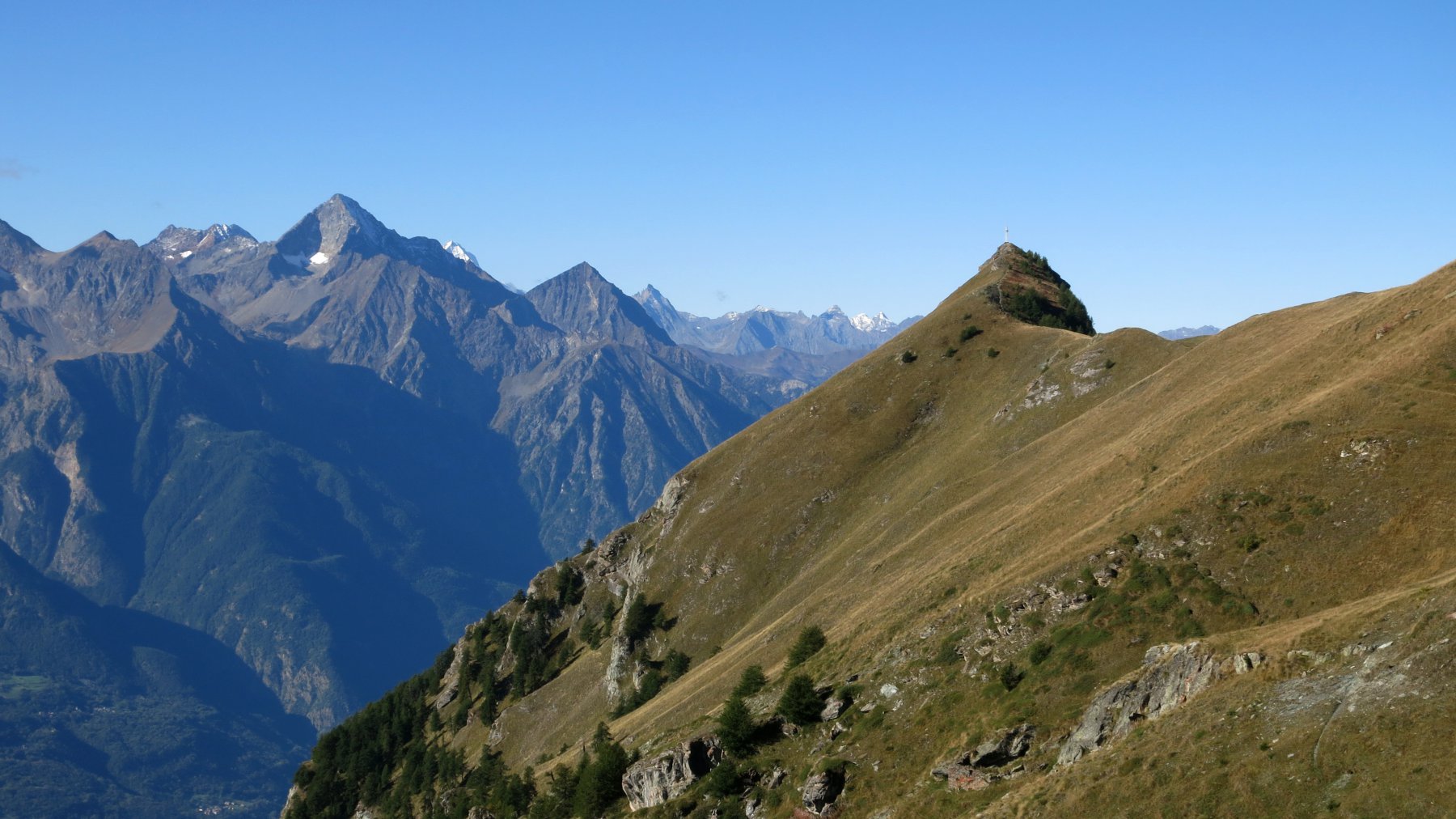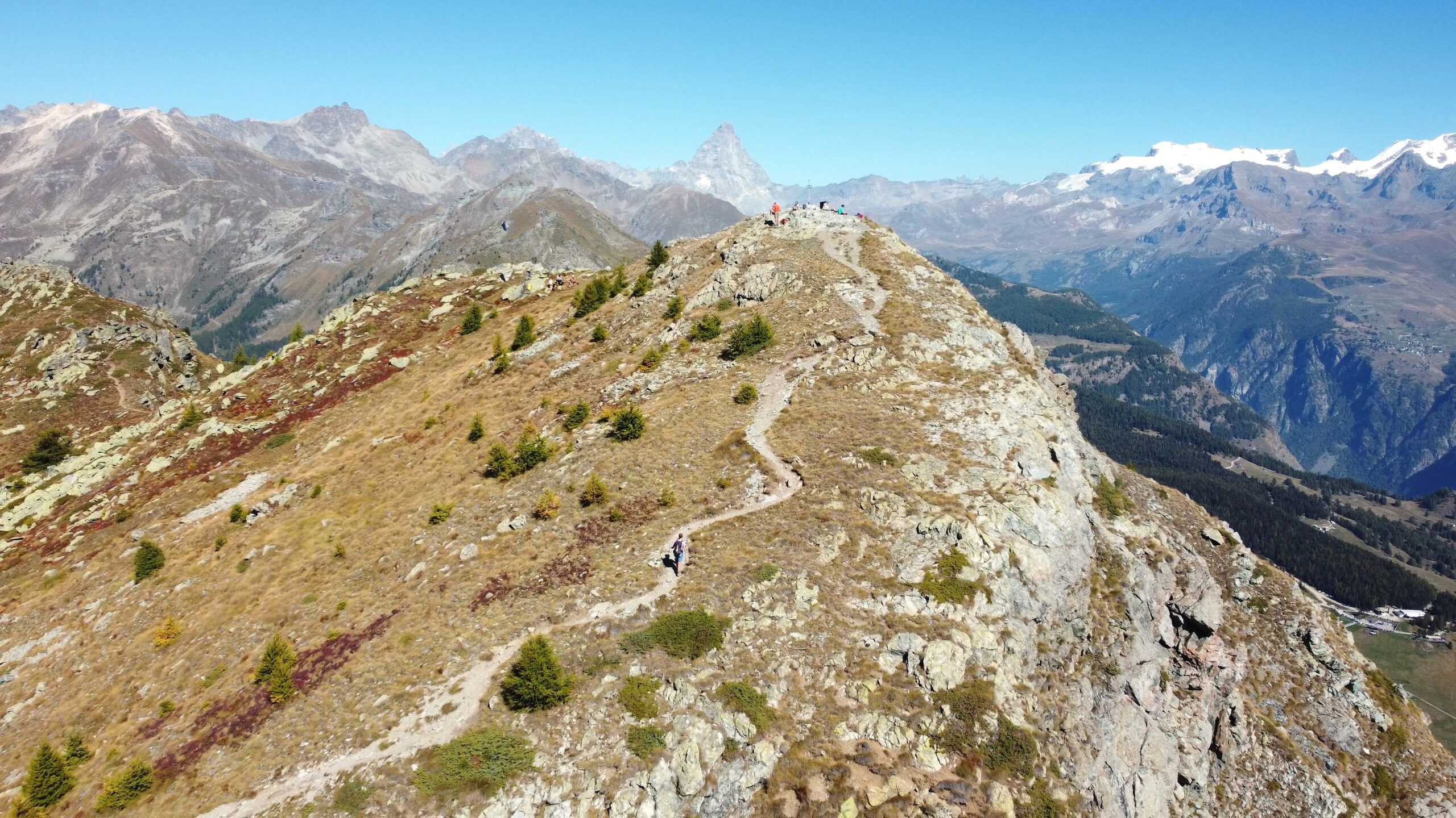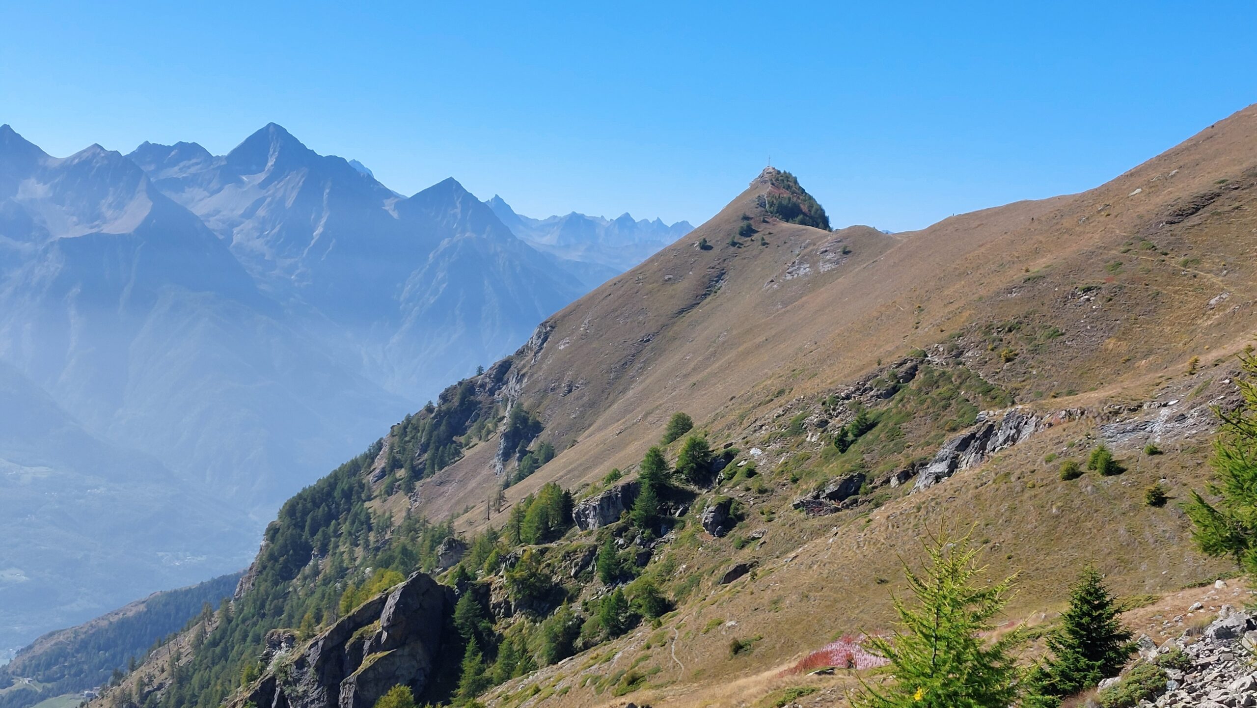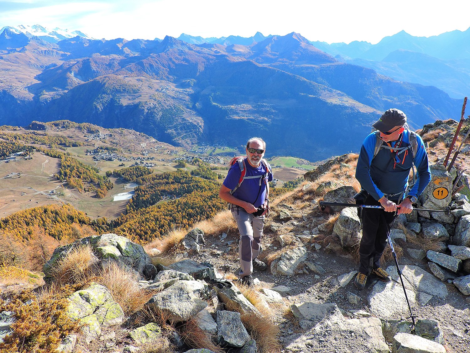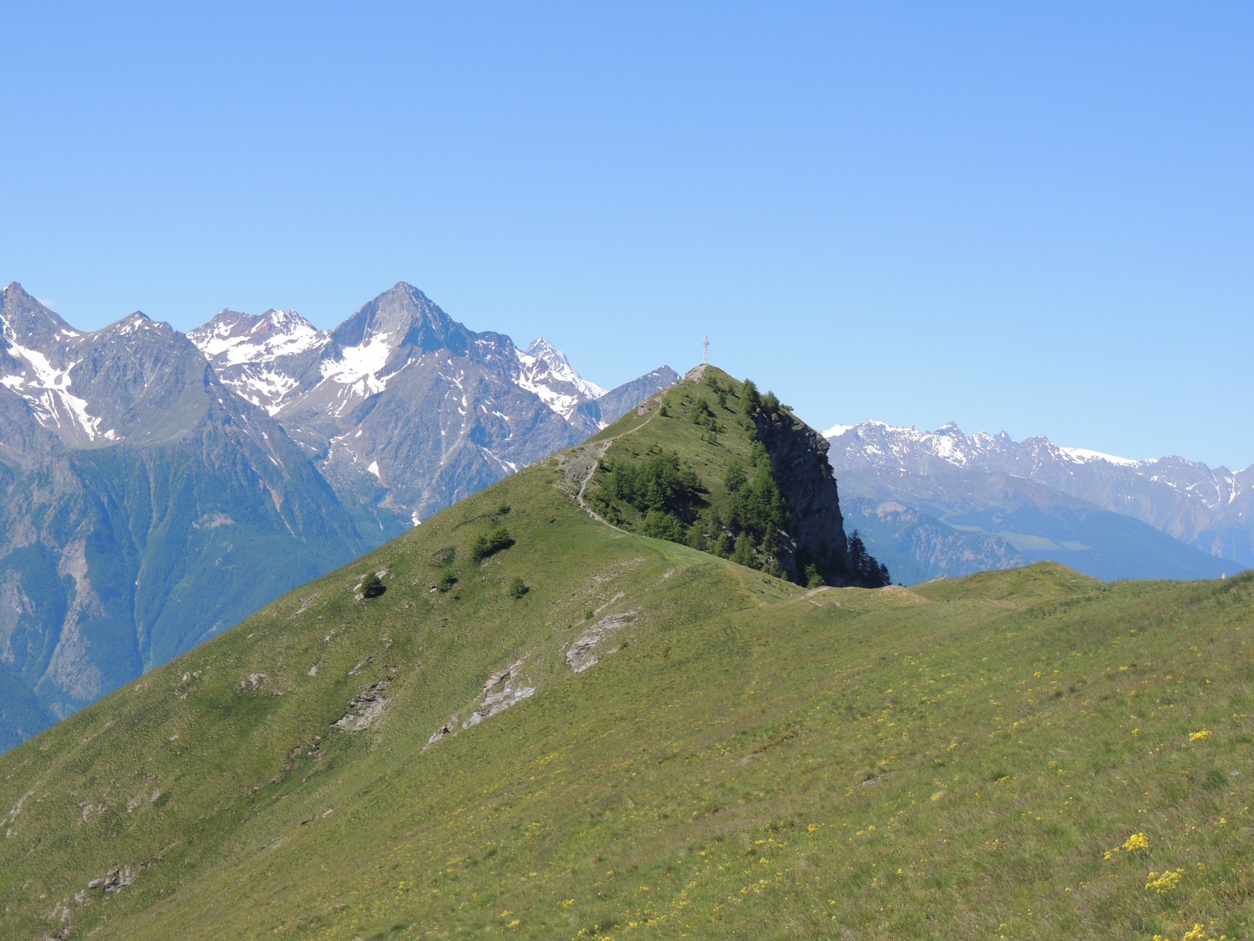 Si scende dalla cima Longhede e si prosegue sulla cresta su sentiero ben tracciato fino ad arrivare in circa 1/2 ora sulla cima della Becca d’Aver (2469 m) dove il panorama a 360° si apre sull’intera Valtournanche , sul Cervino , sullo Zerbion e sull’intero vallone di St. Barthelemy .