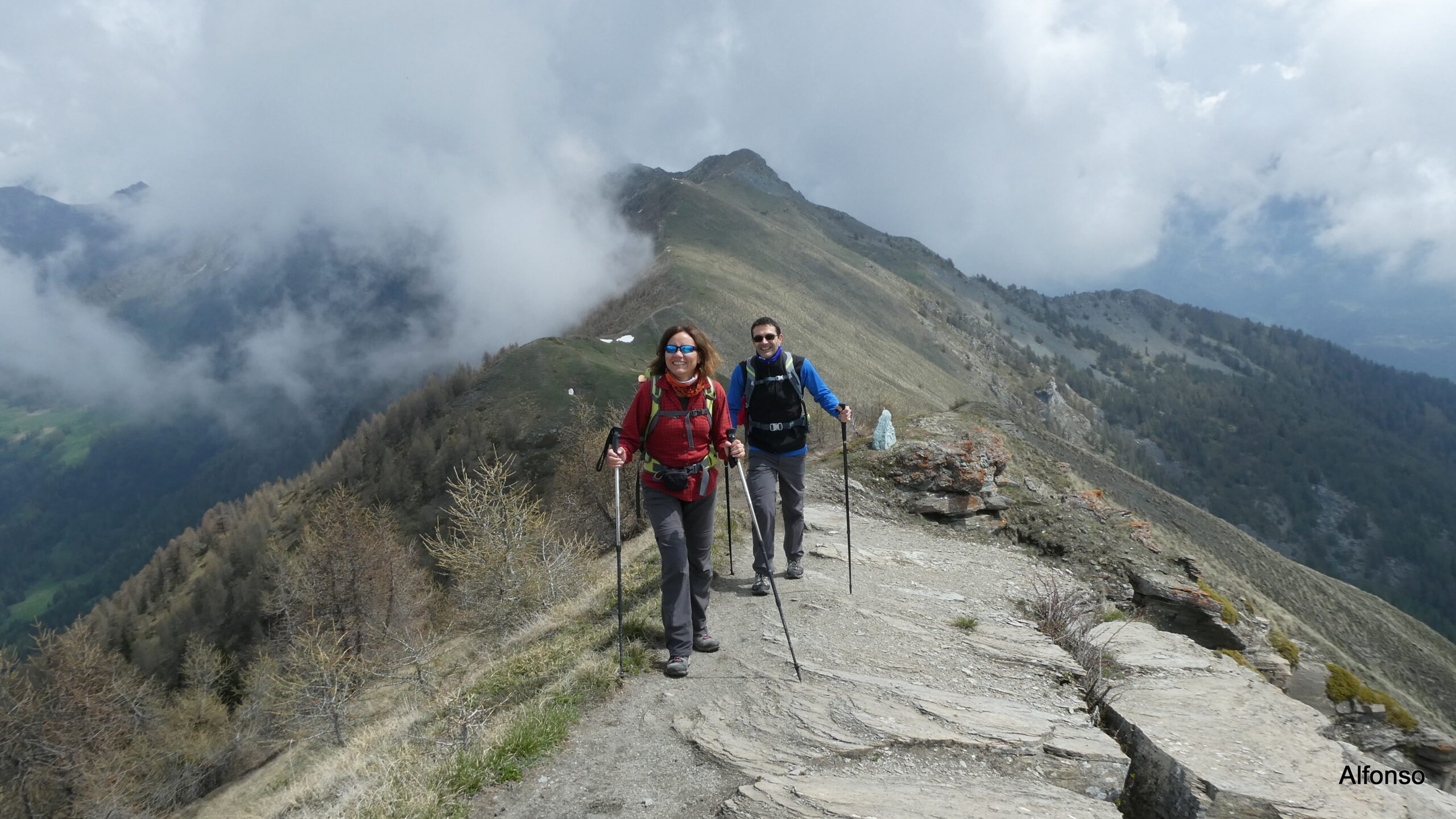 Ancora una volta sulla Becca senza panorama; giornata nuvolosa con sprazzi di sole misti a nebbie, per fortuna senza prendere acqua. Bella camminata alle due cime, non ci siamo fidati a proseguire per il col Fenetre per la minaccia della pioggia. Sentieri in ordine e inizio delle fioriture!