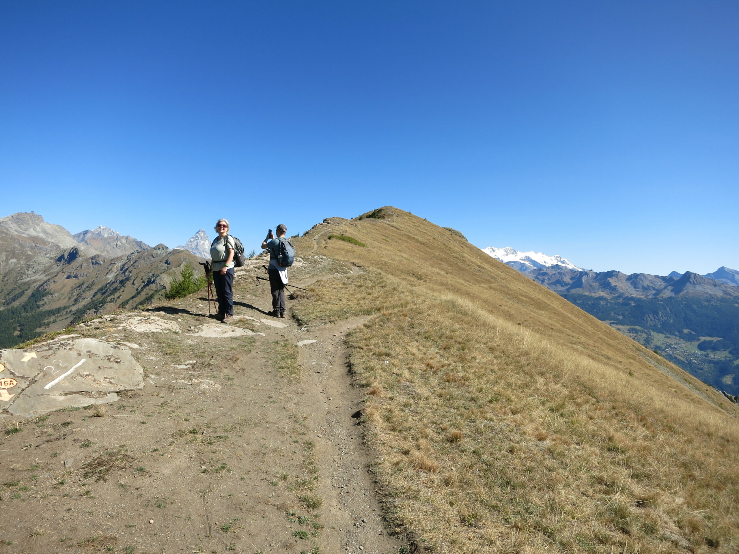 Non abbiamo fatto il giro qui descritto ma ci siamo limitati a salire la Longhede e successivamente, percorrendo la panoramicissima dorsale, abbiamo raggiunto la Becca d’Aver. Giornata spettacolare