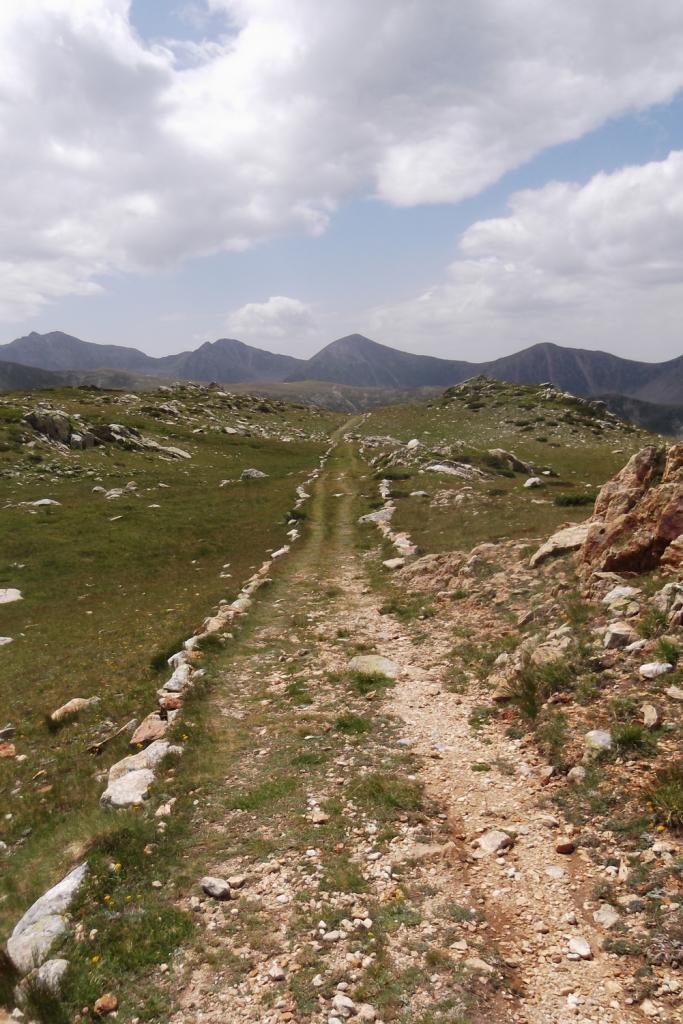 La discesa si effettua per prati e tracce di sentiero (ometti) al Colle dei Morti e quindi alla strada asfaltata.