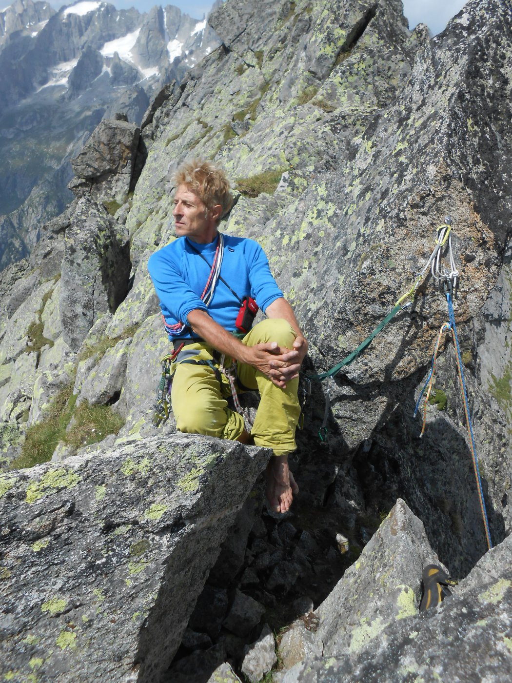 Itinerario tecnicamente non molto difficile ma ingaggioso per via delle poche protezioni (tra l’altro probabilmente alcuni chiodi indicati nella relazione , tratta da :NEL REGNO DEL GRANITO nuova ed. A. Gaddi, sono stati sputati dal granito vedi il primo di L1 e in L5), la difficoltà sta nel trovare la giusta linea di salita. La roccia è bella e l’arrampicata varia su placche e fessure. In L5 alla partenza (passo di 6b) si vede un chiodo a sin noi non l’abbiamo usato, abbiamo piazzato un friend buono e siamo saliti dritto, poi concentrarsi bene per procedere nella giusta direzione. Abbiamo usato microfriends BD C3 tutti, e BD C4 fino al 2, non avevamo i dadi che forse, in alcune occasioni, avrebbero fatto un servizio migliore dei C3. Salita in 3,45 h , discesa filante, con corde da 60 si salta S1.