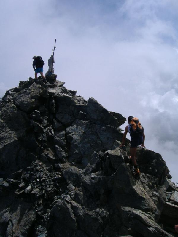 La discesa sul versante nord est, invece, è decisamente più sfasciumosa, più facile come passaggi e meno esposta, ma su pietraia instabile e noiosa. consigliabile quindi, secondo me, salire e scendere dal versante opposto.