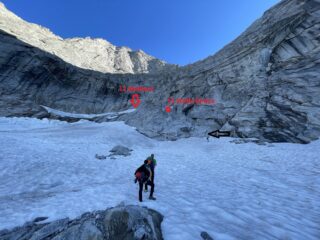 Per attaccare la via siamo partiti da Stella Retica. Raggiunta la prima sosta attraversare in orizzontale verso sinistra cercando il facile fino a raggiungere la prima lunghezza della Molteni.