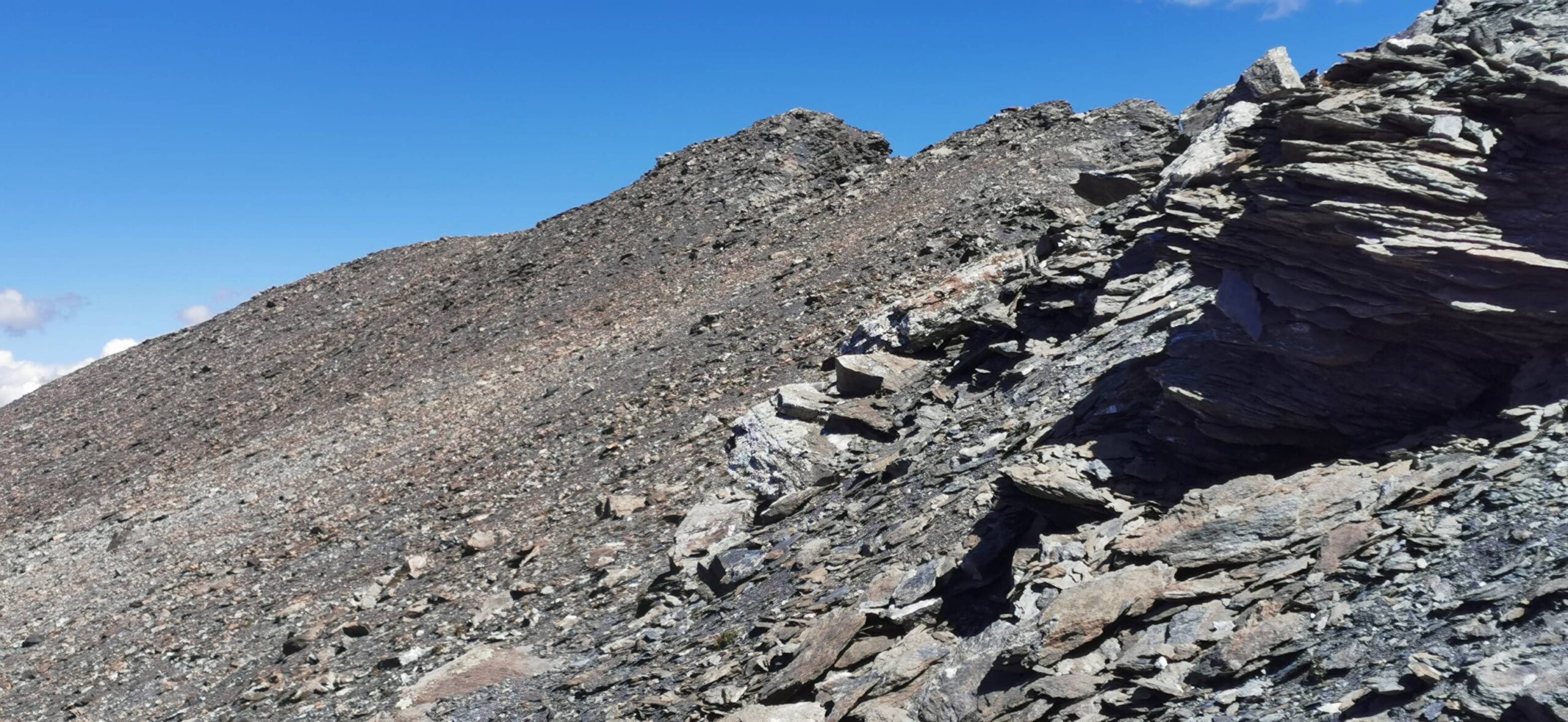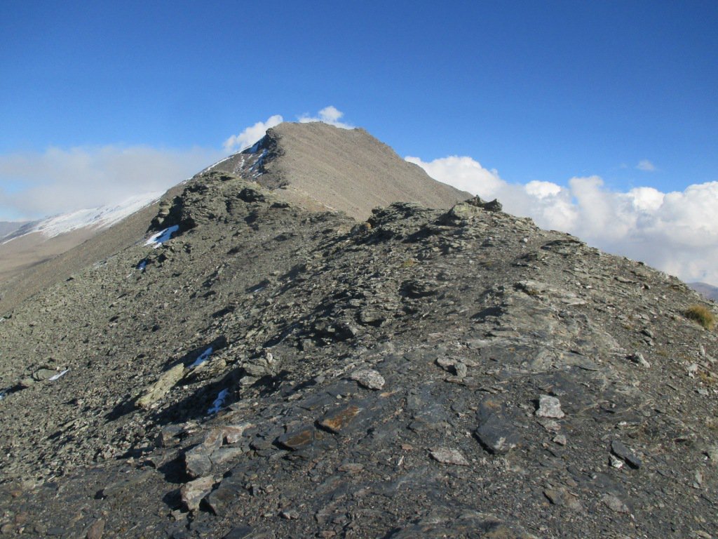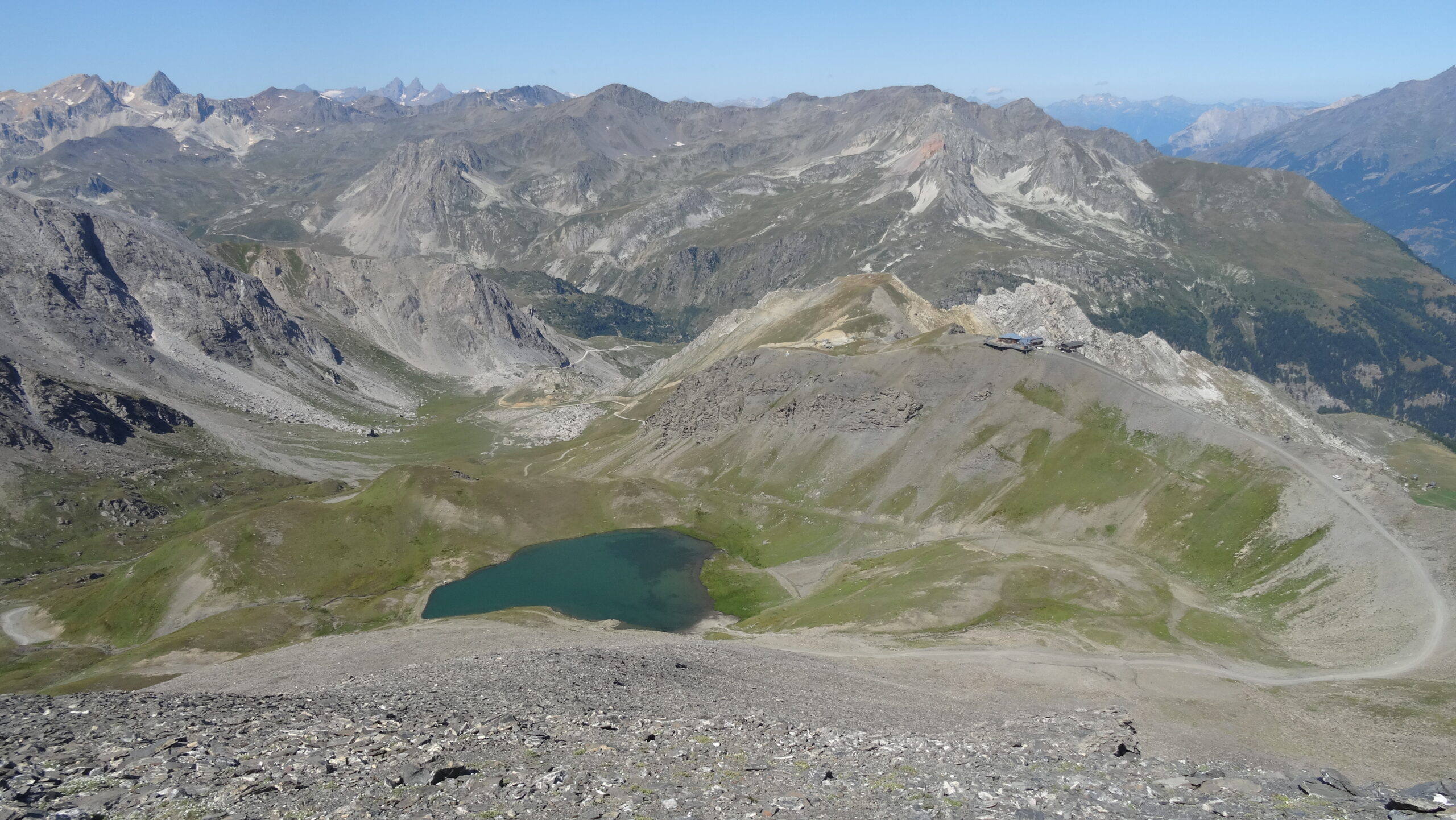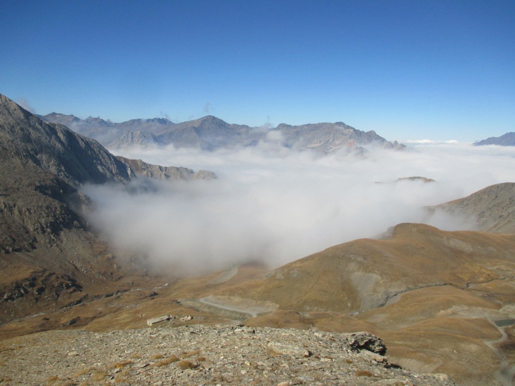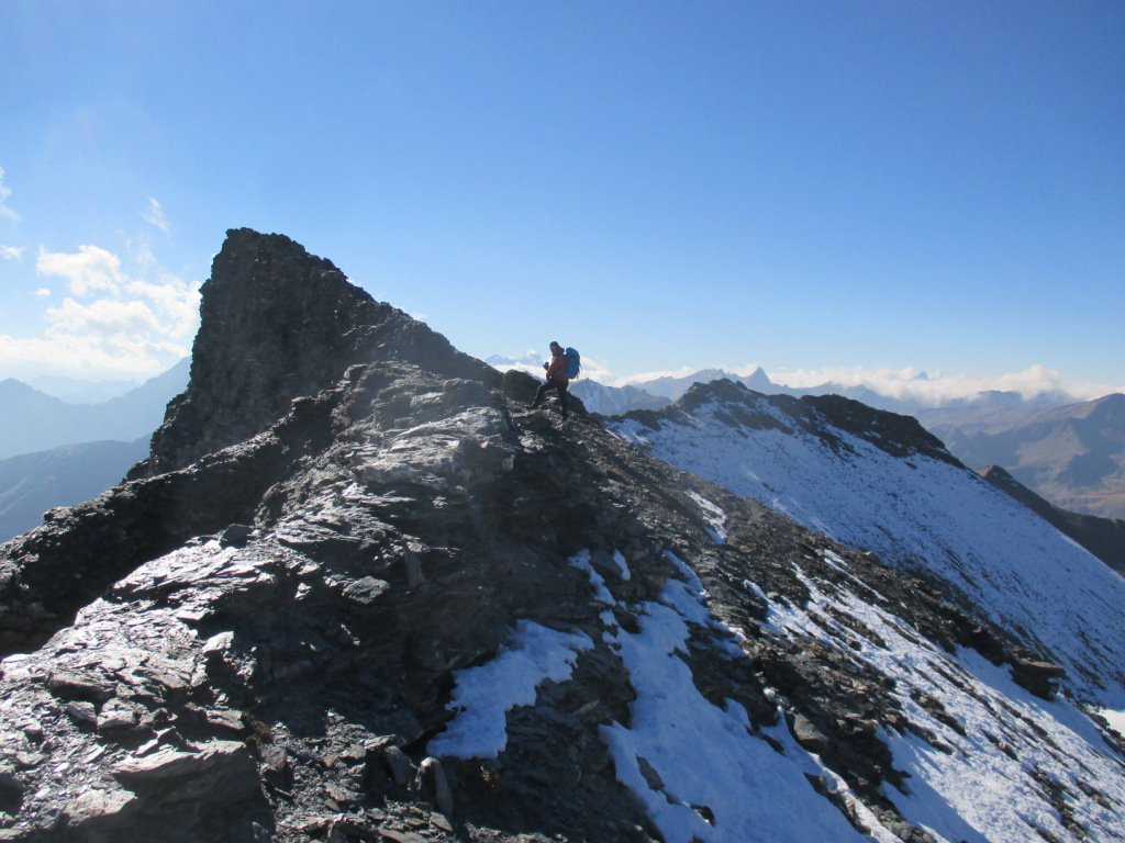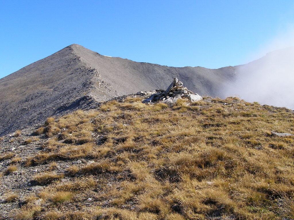 Giunti al colle, si volge a destra tenendosi sul versante francese, e si sale fino alla quota 2787 (evidente, ometto) per prati con alcune tracce di sentiero; da questo punto inizia la parte finale su sfasciumi, ma il sentiero diviene più evidente e sono presenti ometti.