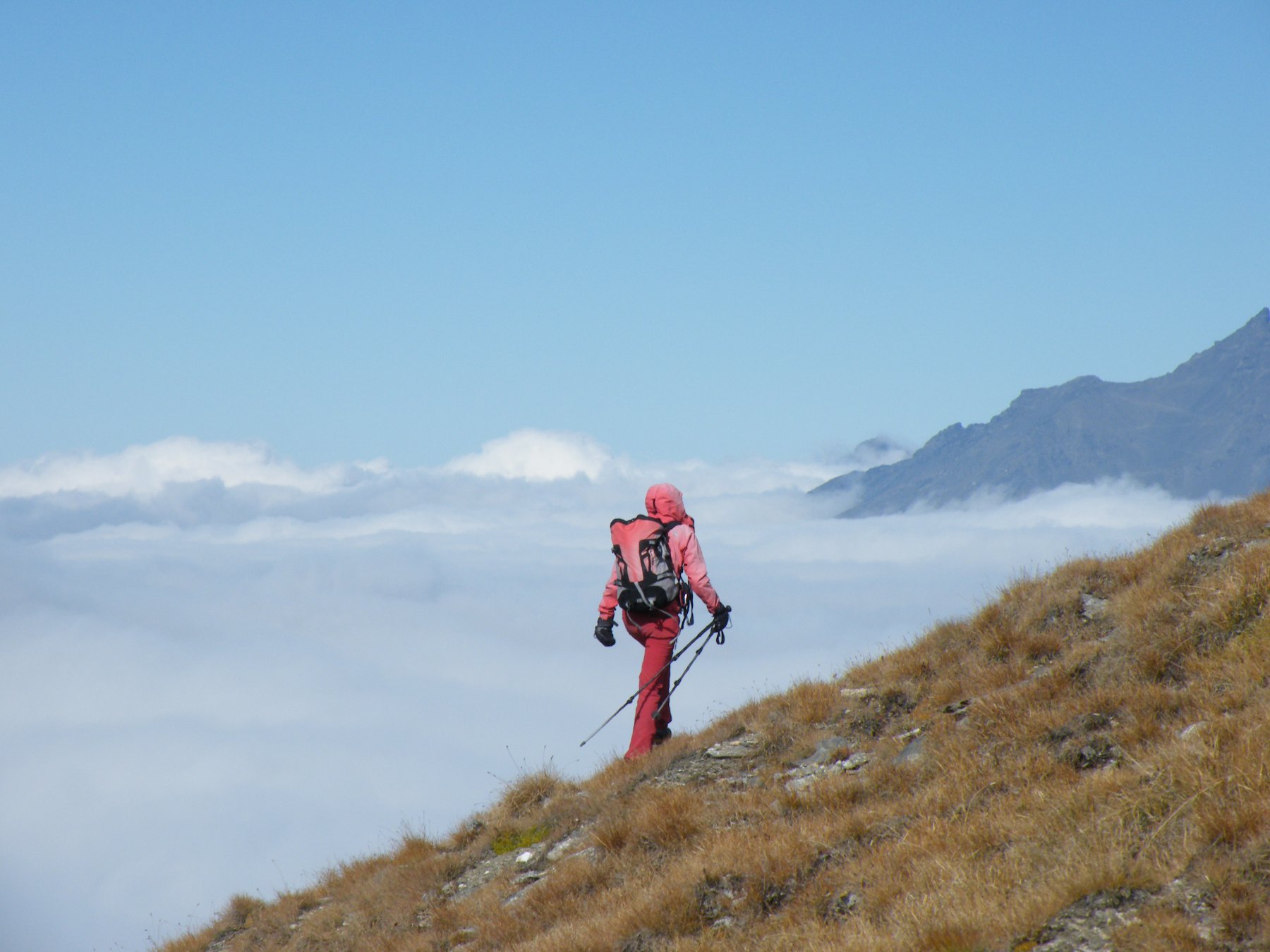 Tenere presente che i pendii verso sud (Bardonecchia) precipitano quasi costantemente sui pascoli sottostanti; evitare dunque di contornare le asperità su tale versante.