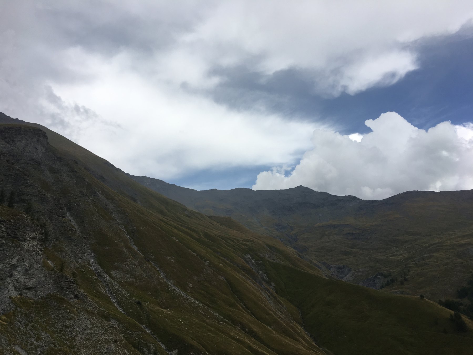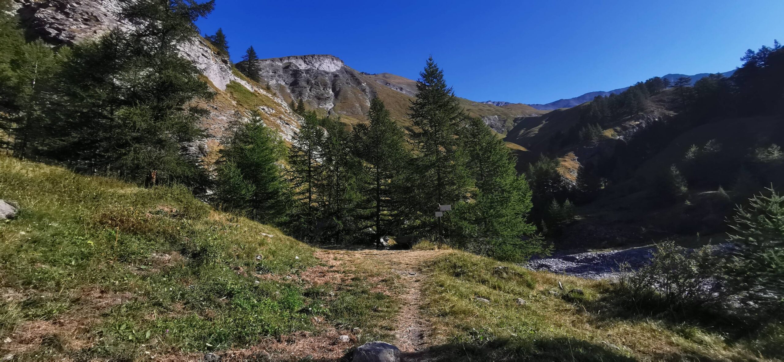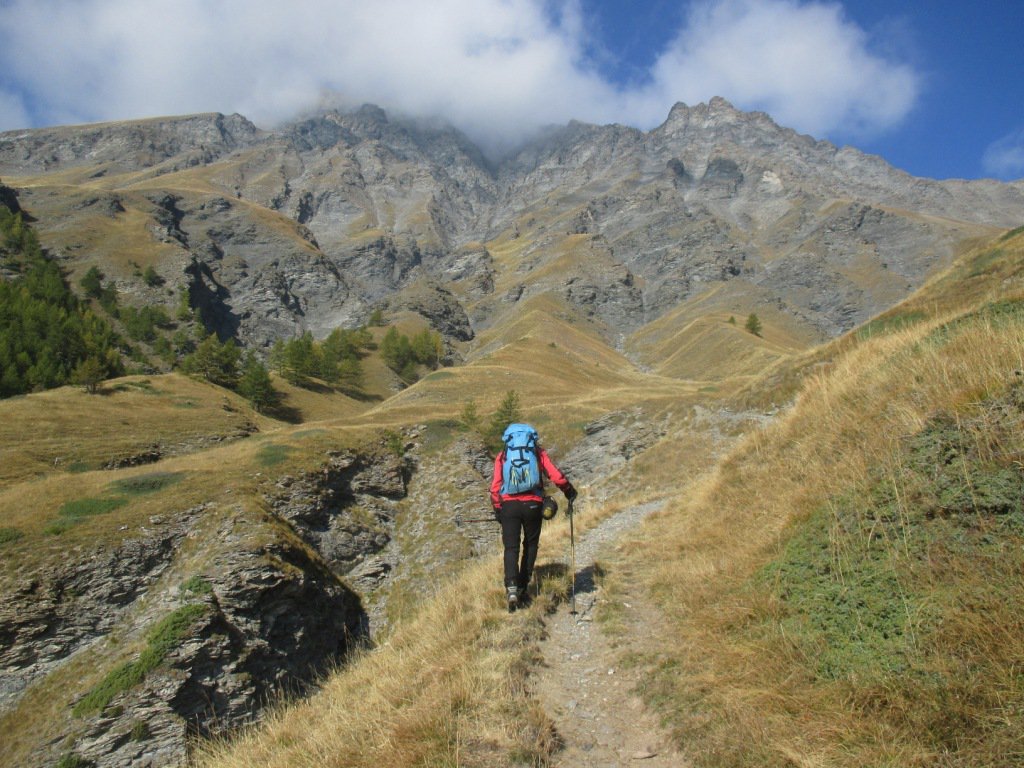 il sentiero, molto ben evidente, inizia a salire subito ripidamente; tenere presente che si effettuano 1200 metri di dislivello con uno sviluppo di soli 4 Km fino alla Punta del Frejus.