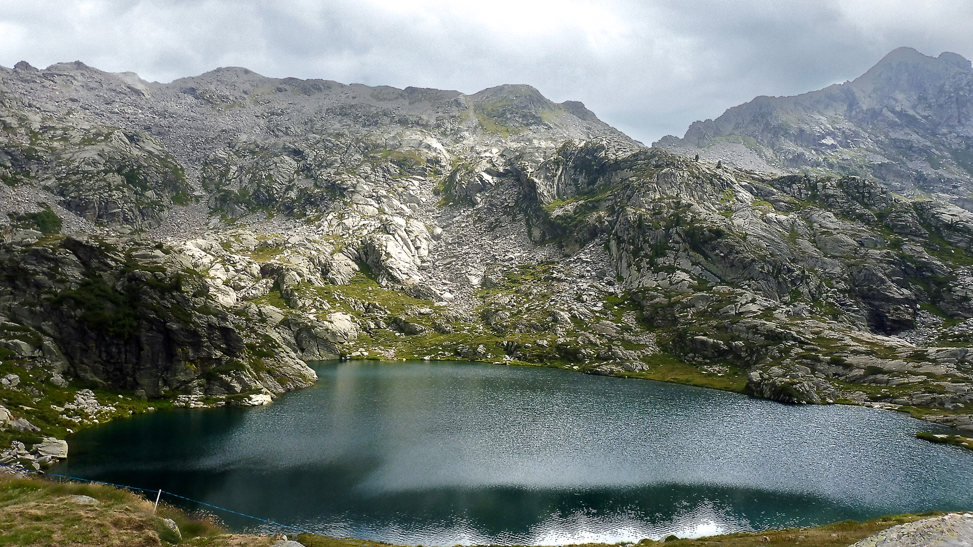 2° Tappa Si segue il sentiero E 60 che in breve raggiunge il Colle della Mologna Grande, qui iniziano i segni azzurri che contraddistinguono l’ alta via, si segue la cresta verso sinistra e si raggiunge la cima del primo Gemello , dalla cima si scende una ripida placca con catena che ci porta alla forcella tra i due gemelli salire ora un tratto di roccette attrezzato con corde fisse e poi per sentiero esposto fino alla vetta del 2° Gemello , scendere la cresta erbosa in direzione Sud fino al colle della Mologna Piccola ,scendere sul versante Biellese perdendo circa 100 metri e reperire un sentierino a destra E69a che porta al lago Riazzale da cui seguendo il sentiero E 59 si raggiunge prima il passo Ambruse e poi il colle della Gruviera ,si scende al lago della Vecchia ed al vicino rifugio ove si pernotta.