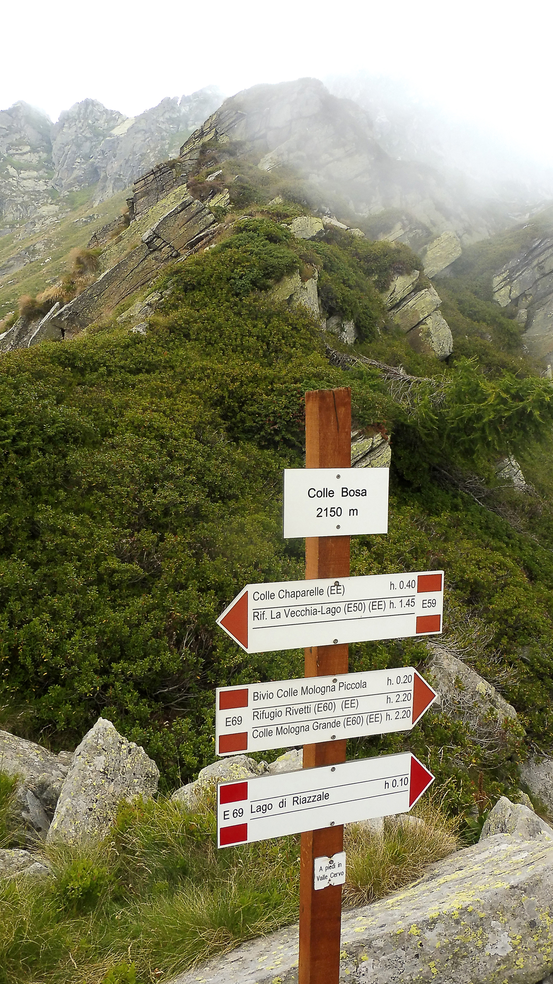 Rifugio La Vecchia buono, scelto di percorrere alta via 1 Valdostana per nebbia fitta presente.