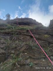 Via classica, dove si respira odore di storia dell’alpinismo genovese. Tiri mai troppo difficili ma sempre interessanti e divertenti; chiodatura datata, non troppo breve ma dove serve. Spettacolare il diedro Gozzini. 3 cordate in Baiarda oltre a noi. Ivano e Giovanni