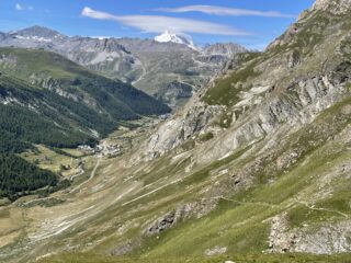 Sono partito leggermente sopra a le Fornet (vedi foto), già sulla strada che sale al col de l’Iseran dove parte un sentiero che si congiunge in breve a quello che inizia dal paese (si risparmia qualche decina di metri di dislivello e c’è un comodo parcheggio).