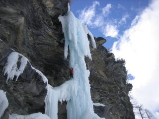 Bellissima cascata,molto estetico il candelone finale. Condizioni ancora buone,anche se oggi faceva caldo. Avvicinamento a piedi,lungo,consigliati sci o racchette da neve. Con Max