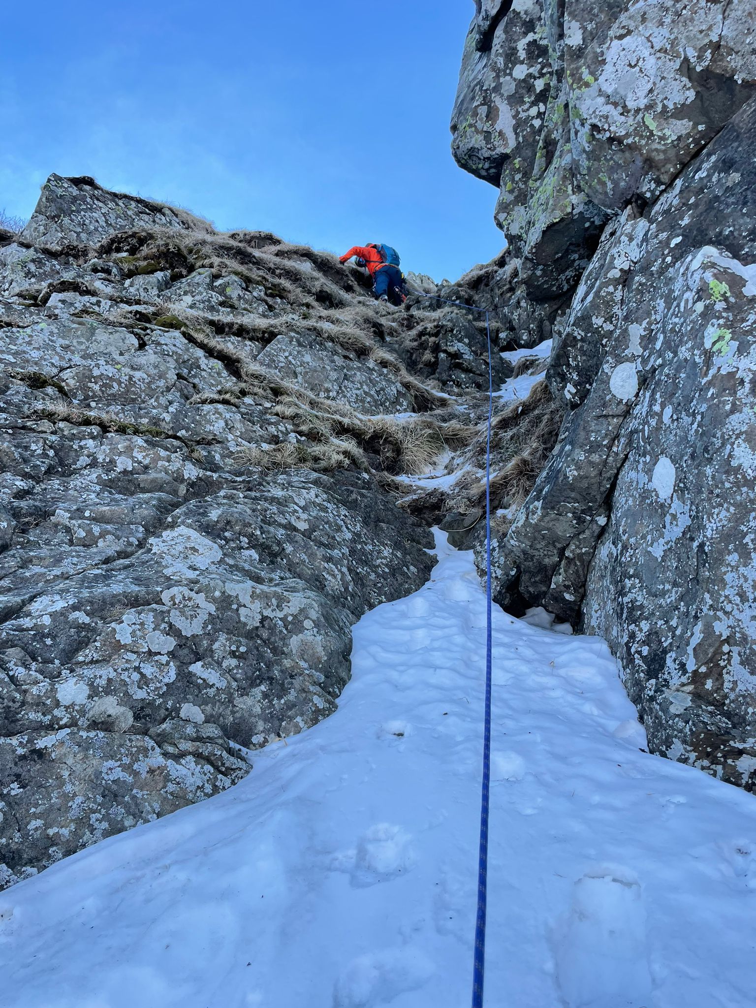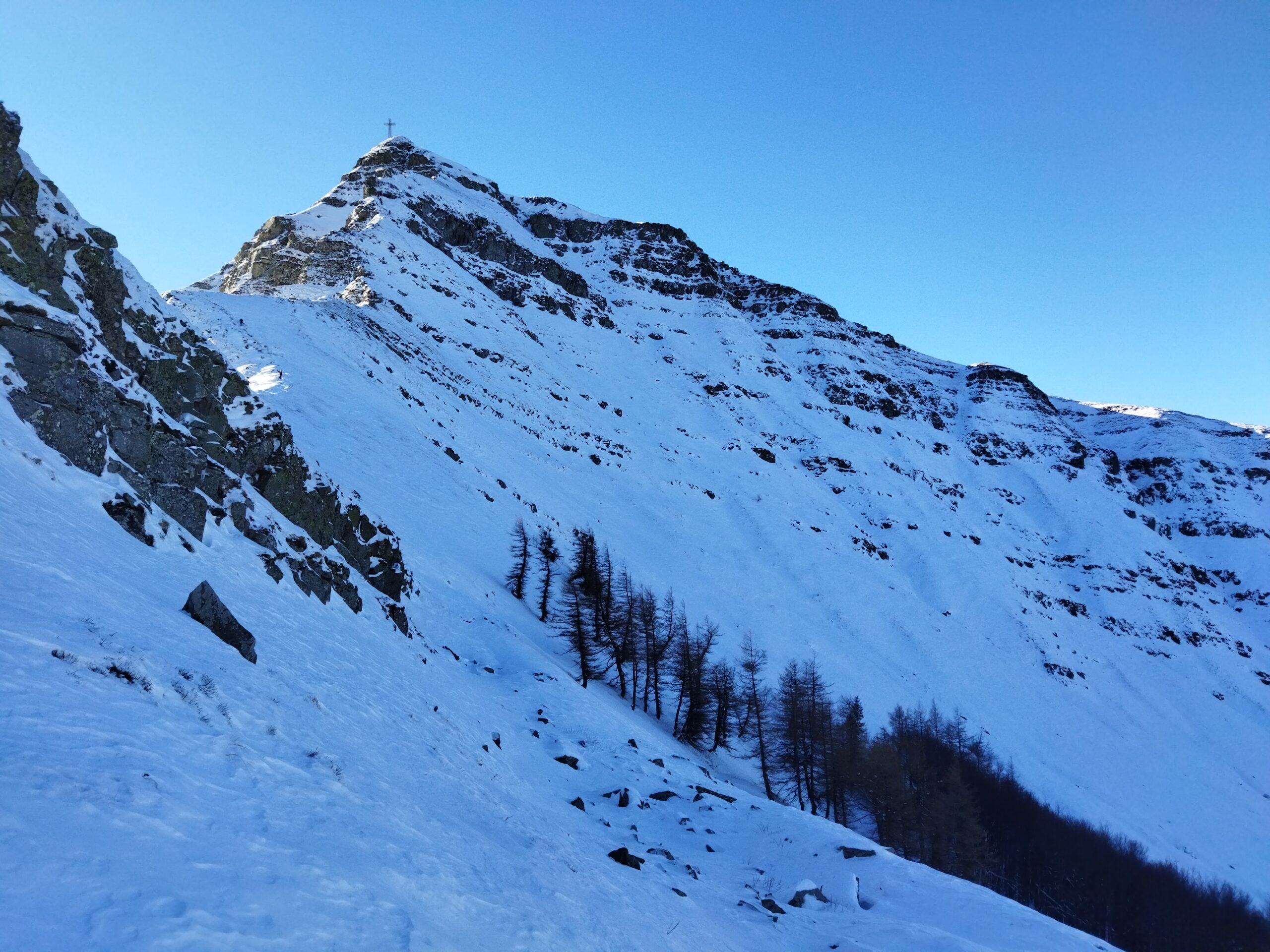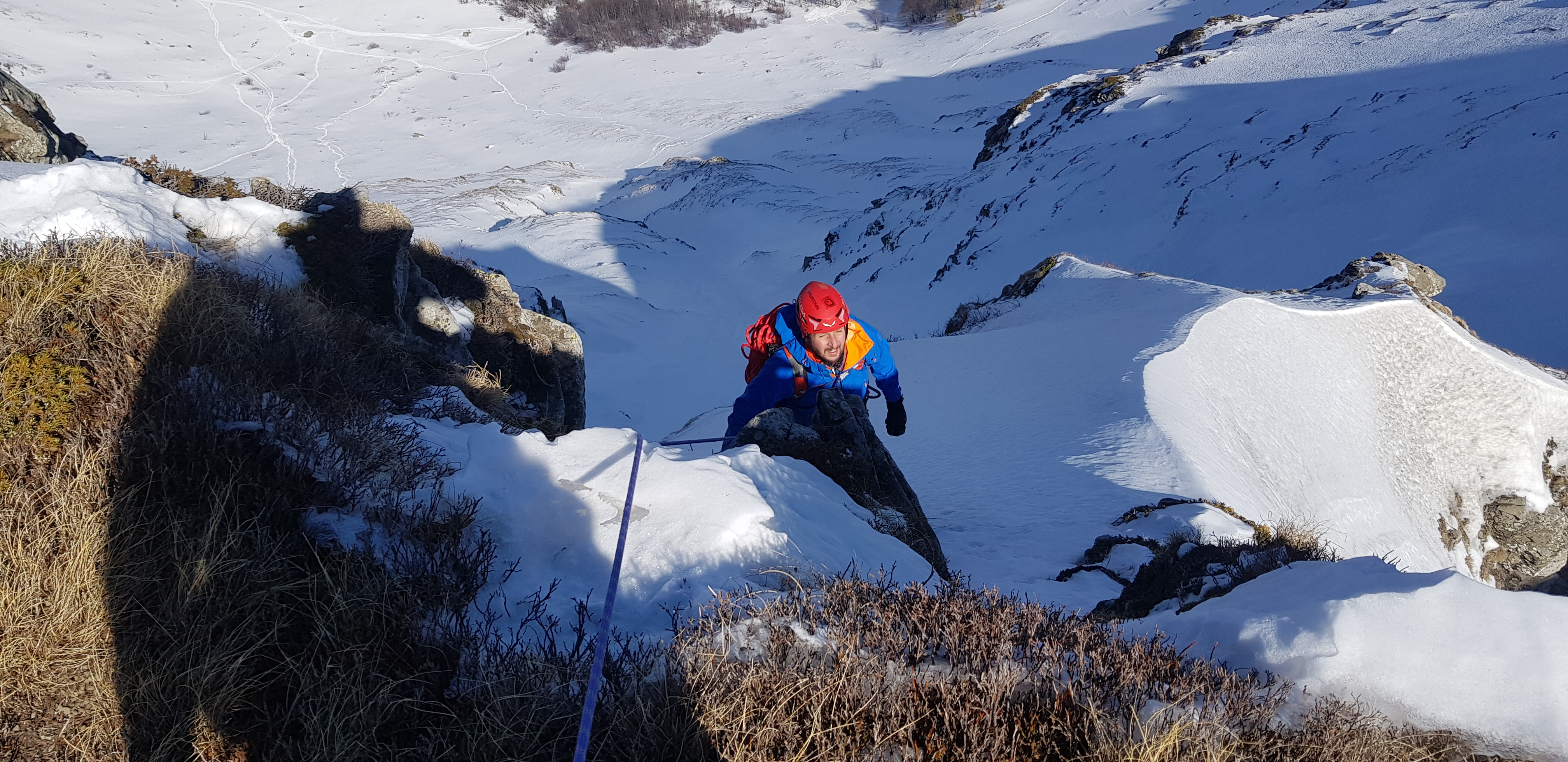 Per uscire abbiamo scelto un tratto scoperto con rocce afforanti che menano alla cresta senza dover affrontare eventuali, e frequenti cornici.