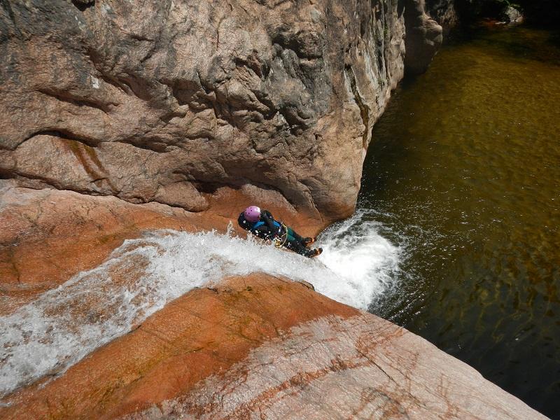Discesa caratteristica x il granito rosa, acquatica e molto lunga, possibile uscire al primo affluente in riva Dx.