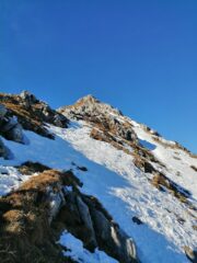 Bella salita che faccio sempre volentieri, cresta pulita e asciutta neve assente o comunque evitabile nel vallone di discesa, tratti ghiacciati prima di pian madoro oggi con Valerio,Claudio,Giorgia e Rosy.