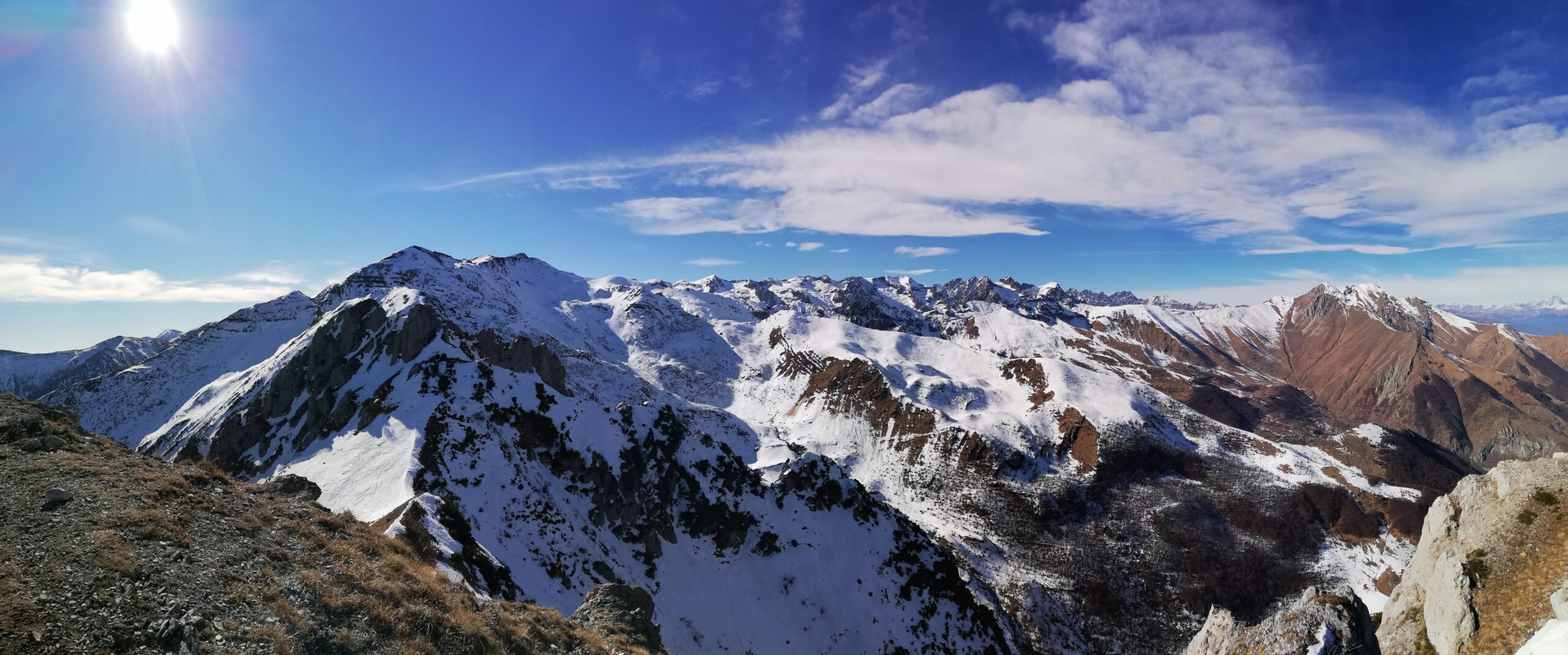 Traccia su cresta con neve praticamente assente. Nella parte alta si puo’ evitare portandosi sul filo di cresta a sin. salendo. Insidiosa la discesa nel vallone: erba lunga e fango la rendono molto scivolosa…
