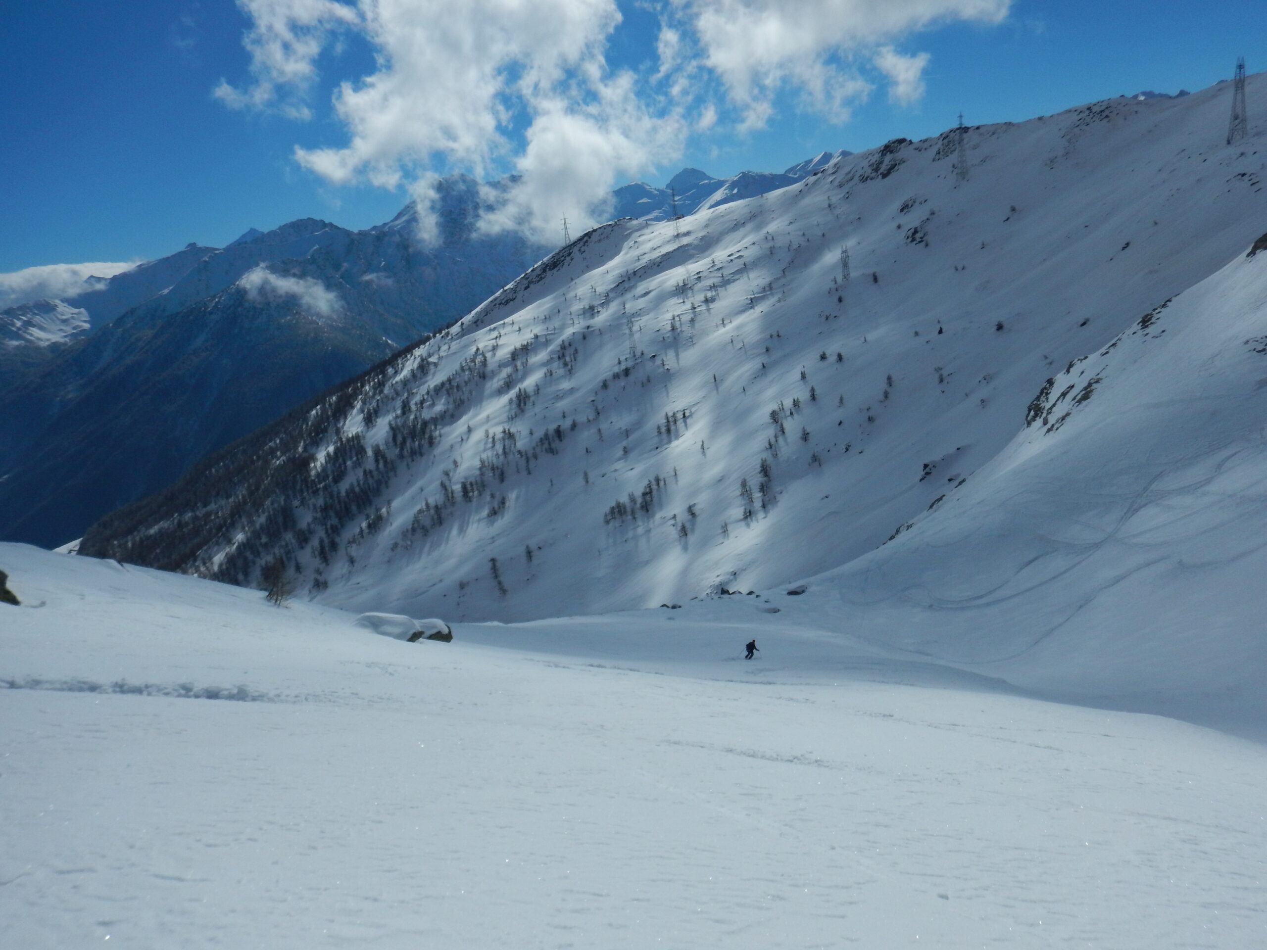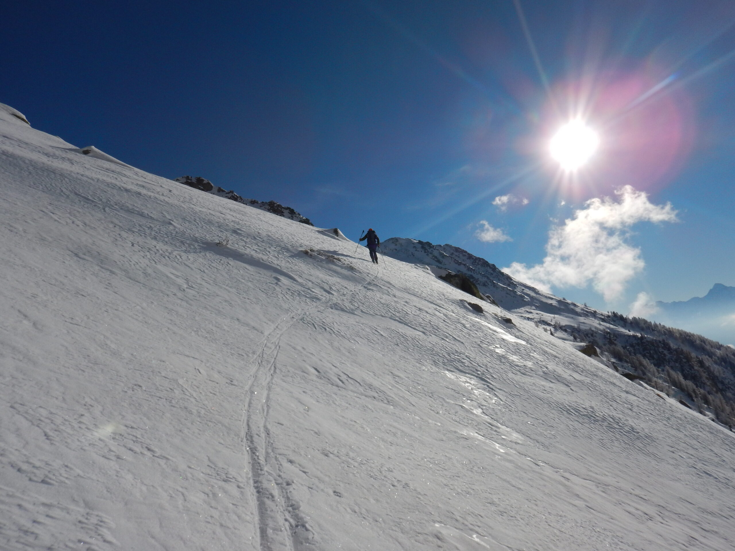 Gran bella gita, con bei pendii, alcuni ripidi. Messo rampant prima di salire il primo ripido pendio. Ramponi per la cresta per arrivare in cima. In discesa neve di tutti i tipi, crosta portante in alto e poi bella farina in basso.