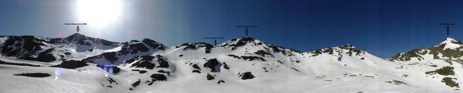 salito per andare al Mon Mor poi visto che mancava neve, ripiegato per questa bella e agevole gita con panorami non meno belli del mont Mor, in compagnia di Giuliano, solo noi due su questa salita, dall’altro versante verso il Fourchon oggi sembrava di essere a Courmayeur in alta stagione, centinaia di skialp.