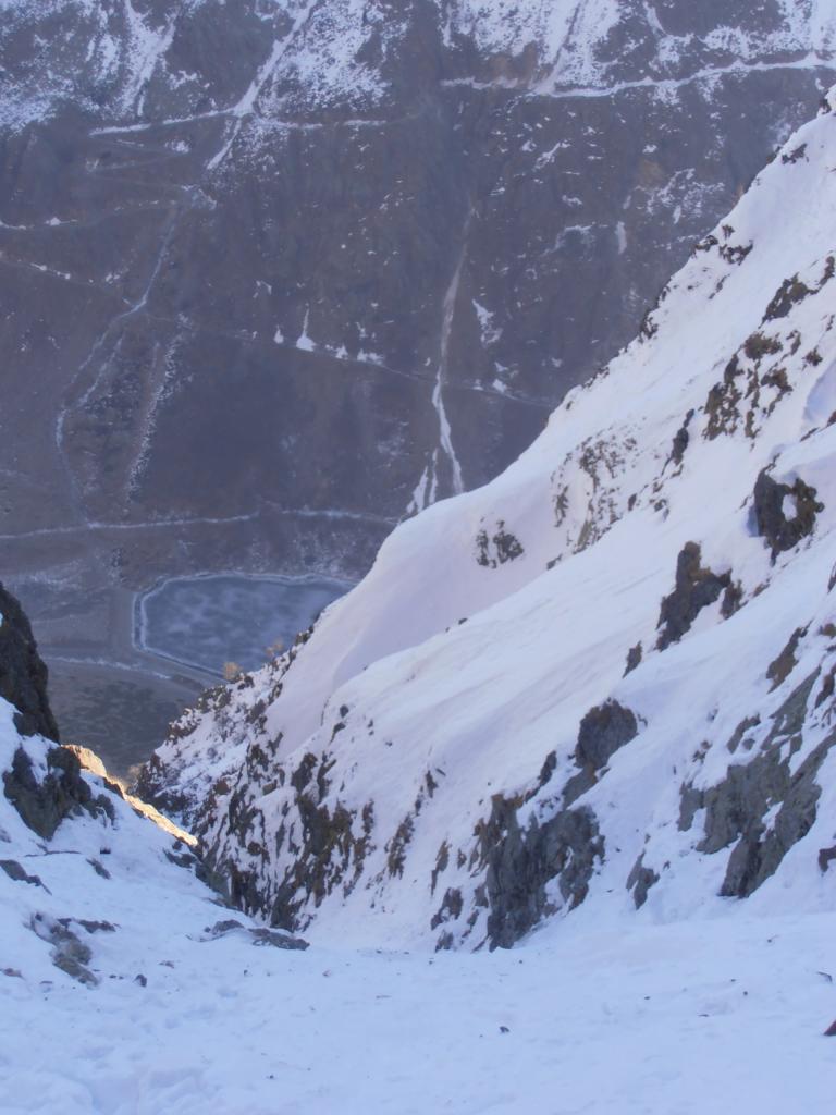 Anche se le difficoltà non sono elevate il couloir non deve essere sottovalutato: lo sviluppo in salita e in discesa sono lunghi.