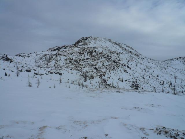 Abbiamo proseguito sino all’alpe posta a quota 2072m per poi cambiare decisamente direzione, nord est superando gli ampi dossi sino ad incrociare il sentiero estivo poco sotto il colle.