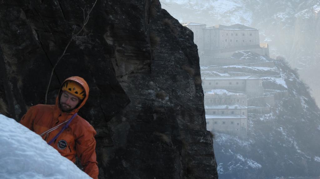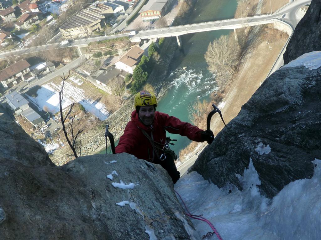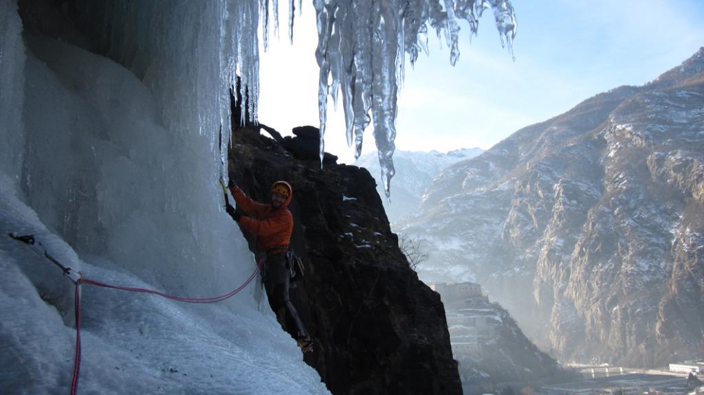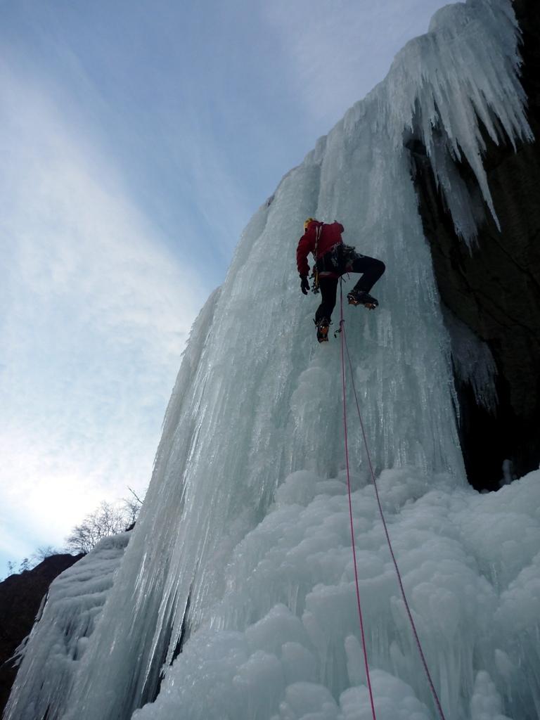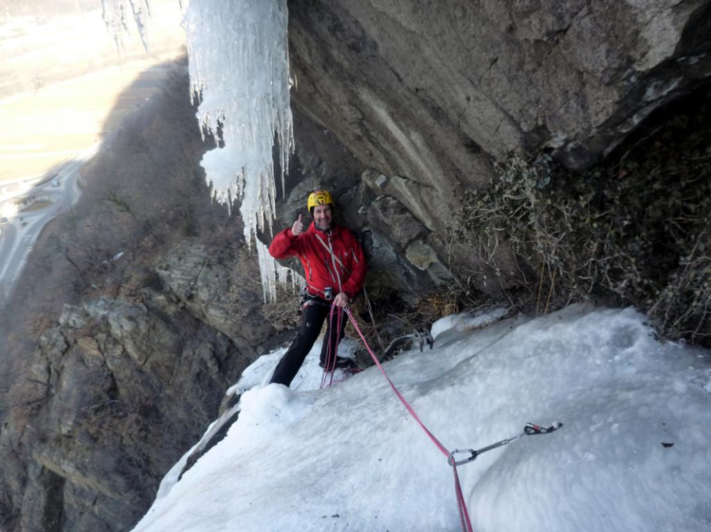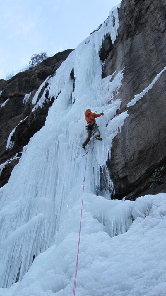 L1: 60m fin sotto la seconda candela, sosta su ghiaccio.