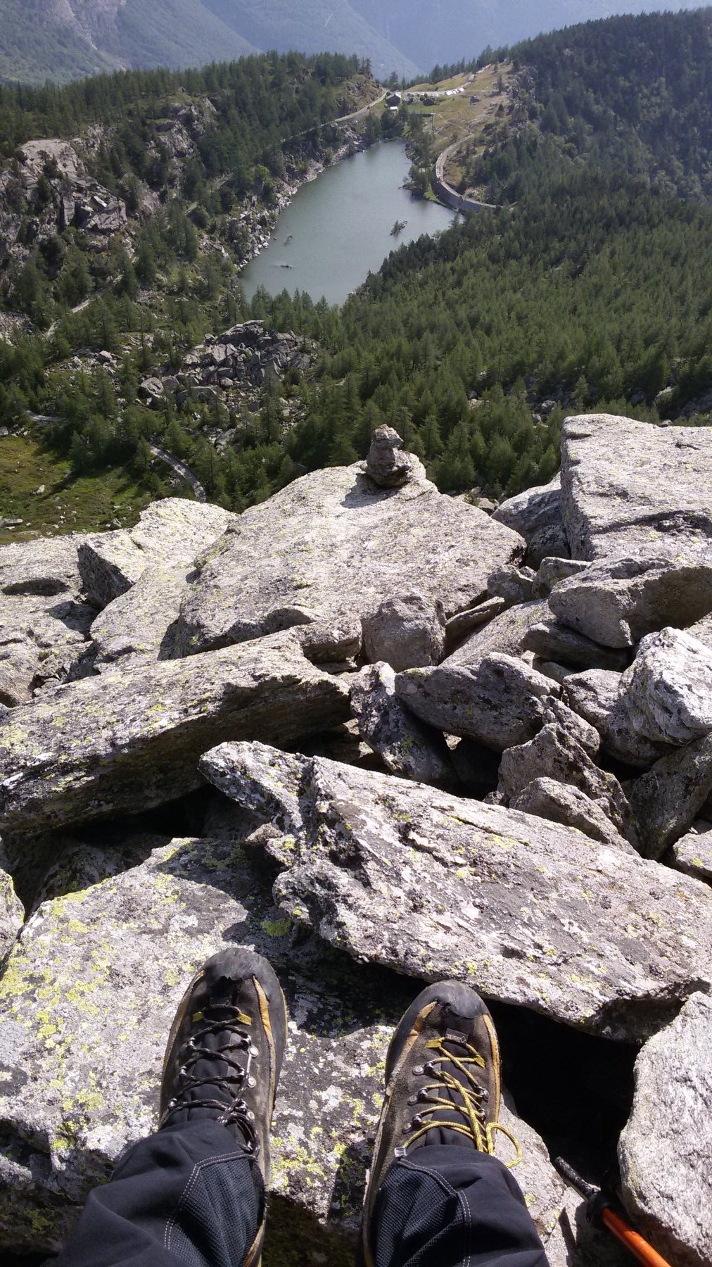 Discesa: Dal palo continuare sulla cresta rocciosa in piano con lievi sali-scendi seguendo gli ometti e scavalcando il punto culminante visibile. Dopo un tratto prativo ed una successiva piccola elevazione, si approda sul sentiero segnato per il Giusalet.