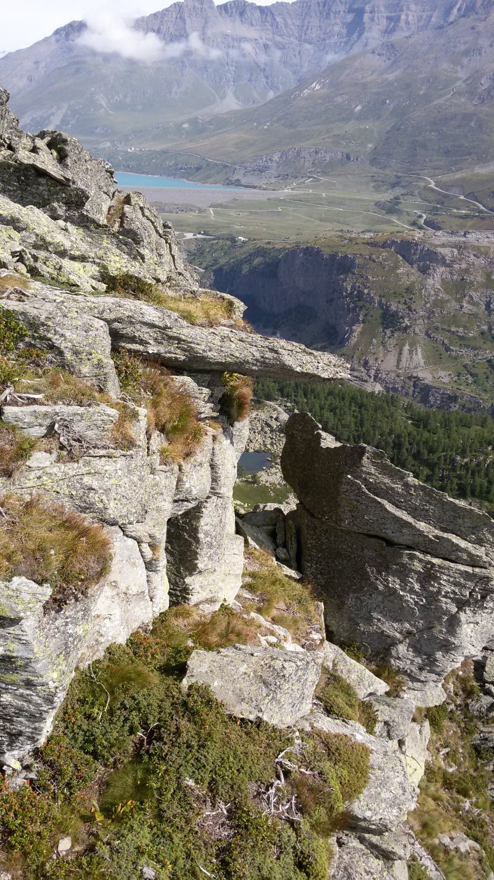 Dal parcheggio, seguire la bella strada militare fino al tornante sopra il grande muraglione.