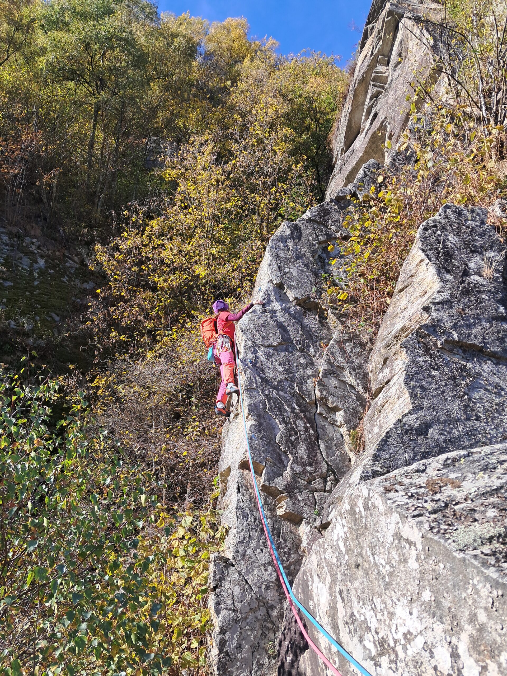 Trattandosi di una via breve, può essere interessante concatenarla con la salita della Via dei Lamponi Profumati che si raggiunge con un trasferimento di circa 20 minuti.