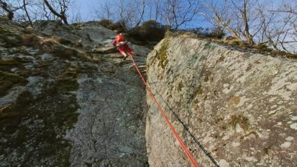 Divertente salita su questo spigolo che emerge dal bosco imponente.