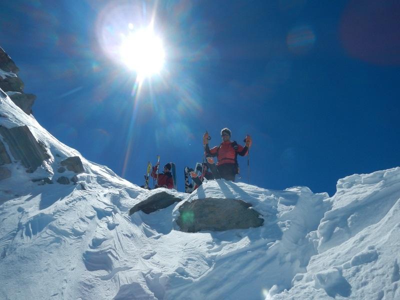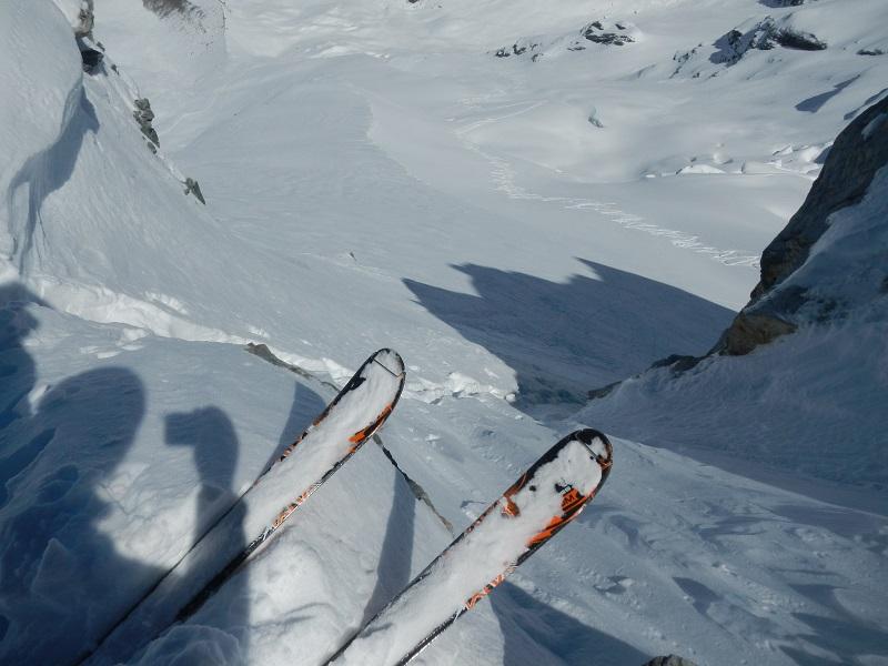Forti emozioni: in alto farina profonda orgasmica, una fascia di neve croccante e un gran finale sulla miglior neve trasformata degli ultimi anni. Arrivati al colle di Giasson, molti rinunciano a salire sulla cresta nevosa, carica con placche da vento, cornici e un discreto distacco iniziale. Salita delicata sul filo di cresta, dopo una bella sgasata di kerosene avio dal solito volatile giallo, che ha fatto due rotazioni oggi, sperando che siano le ultime. Rinunciamo a scalare la rocca striata per neve inguinale e instabile. Dalla gengiva discesa spaventosa fino ai larici del “500”.