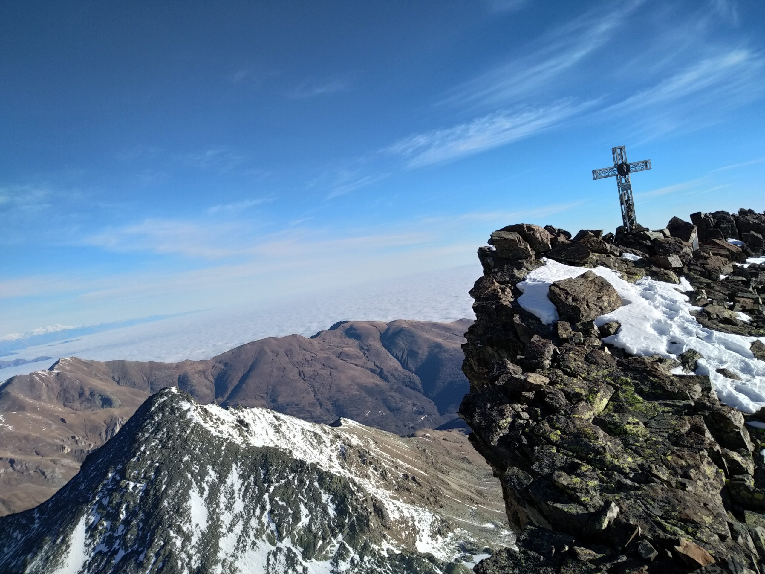 Avvicinamento da pian Regina con molto ghiaccio sul sentiero,migliora da circa 2400m dove si inizia a pestare neve. Canale in condizioni più che buone,pendenza sui 45°/50°circa. Quasi al termine il canale si biforca,uscito a sx seguendo un rampa incassata di circa 30m che con semplici passaggi di misto porta sulla traccia che arriva dal colletto Barracco,da lì in breve si è in vetta. Discesa dalla cresta sud,seguita sul filo fino al cordone con anello, effettuato breve doppia (poco più di 15m) sulla cengia sottostante,poi attraversato a dx (faccia a monte) e disarrampicato x 5/6m su una placca ben ammanigliata che termina nel canale di sfasciumi. Poi giù verso la traccia che porta al passo delle Sagnette,dal passo catene in parte coperte da neve costringono a passaggi esposti,meglio scendere dal canale innevato.