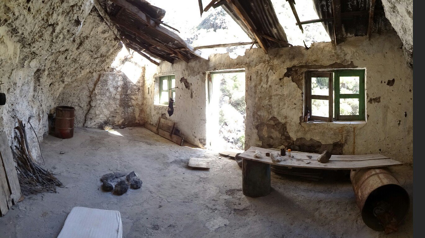 Qui il sole sul collo picchia forte, ma man mano si sale, per fortuna aumenta anche la brezza. Arrivo ad una casa, aperta, dove a giudicare dall’arredamento paleolitico dovrebbe essere abitata. Da un disperato o.. da un uomo libero… a seconda dei punti di vista.