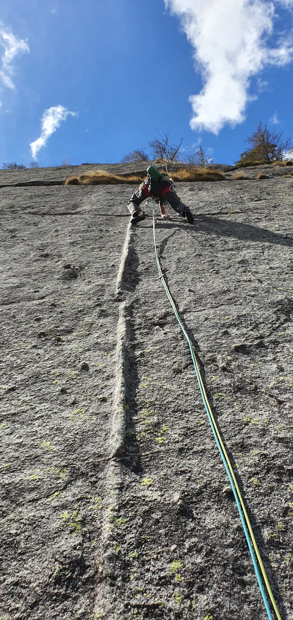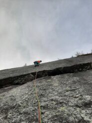 La via segue la direzione ideale data da una blindosbarra in quarzo poco pronunciata che si lascia pinzare solo con l’immaginazione.