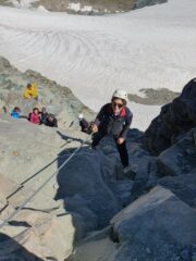 Unico tratto residuo di neve al colletto precedente la rocca, in piano non da problemi. Salita alla croce attrezzata con staffe e cavi in acciaio di recente posa.