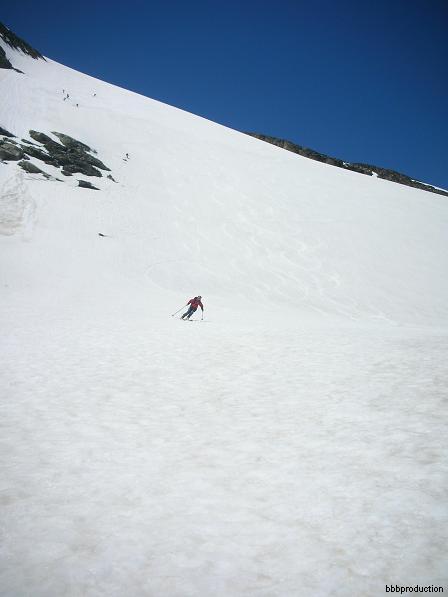 Ottimo giro descritto da Enzo per una bella sciata che ci ha permesso di sciare al ritorno praticamente fino al Serrù e visitare combe molto remunerative pena una breve risalita (tanto se uno ritorna sulla strada del Nivolet deve sorbirsela lo stesso). Saliti e scesi per un canalino che da accesso al ghiacciaio superiore ancora buono per un pò. Temperatura fresca che ha mantenuto la neve tutto il giorno nonostante ce la fossimo presa davvero con calma.