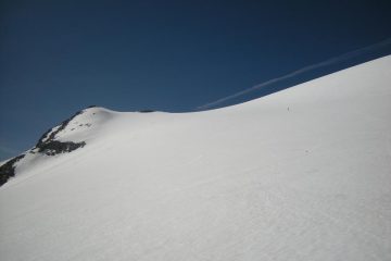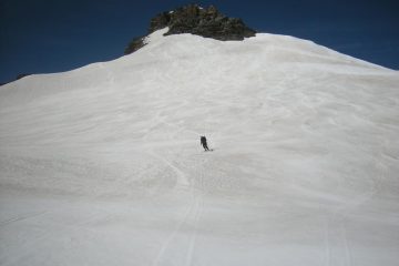 Ultima gita per quest’anno, stupenda sciata dalla cima fino a 2700 m. poi neve grotoluta con solchi profondi anche mezzo metro che ci facevano capire che e’ finita. In basso non conviene piu’ cercare di raggiungere il lago dell’agnel. Forse e’ meglio risalire al colle del nivolet. Le frese sono in piena opera e penso che per il fine settimana la strada sia aperta fino al colle. Meteo stupendo con ottimo rigelo. Grazie a Lino per la giornata.