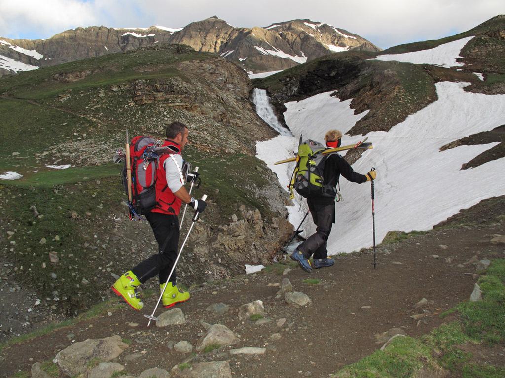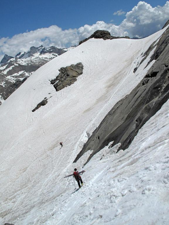 Portati gli sci fino alla conca, canale buono. Passaggi stretti per arrivare sul ghiacciaio. Ghiacciaio perfetto, ferrata ottima. Che dire, come ultima gita: un gran finale.