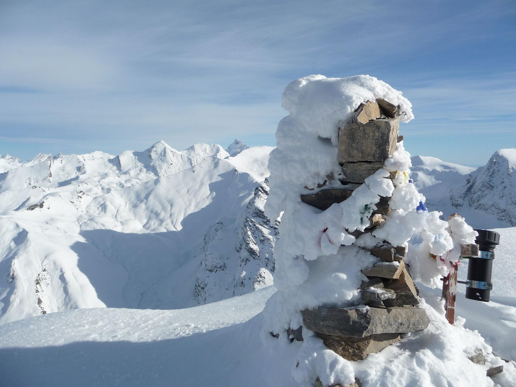 Si portano gli sci per circa 200m poi neve continua, saliti per l’itinerario descritto sino in vetta. Prima discesa lato nord est fino al Plan de Chabriere su polvere magnifica. Ripellato fin sotto il canale nord est che sale al Pointe Haute de Mary ma ripiegato sui nostri passi a 100 metri dal colletto vista la neve nel canale non sicura a nostro modo di vedere. Allora discesa sempre spettacolare fin al piano e secondo ripello fin sotto la vetta per scendere nel vallone de l’Alpet su neve magnifica e poco tracciata.
