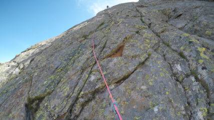 1 tiro 5b i primi metri risultano essere facili ma poi ci sono dei passaggi di placca non banali. 40 m di tiro abbastanza continuo
