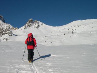 Giornata serena, ma piuttosto ventosa. Arrivati in cresta il vento ha cambiato direzione consentendoci di riposarci un po’ a un tiepido sole. La discesa dal Ref. de Buffere è stata effettuata perpendicolarmente al medesimo (come consiglia un cartello) attraverso una pineta alquanto ripida. Qui neve fresca, ma lavorata dal passaggio di altri scialpinisti.