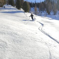 Discrete condizioni in alto. I pendii in ombra sotto la Fournier sono ancora ben sciabili.