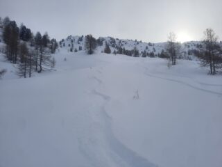 Qui si trovano spazi intonsi più ampi ma solo nel tratto iniziale salvo poi convergere con quello che scende dalla Fournier.
