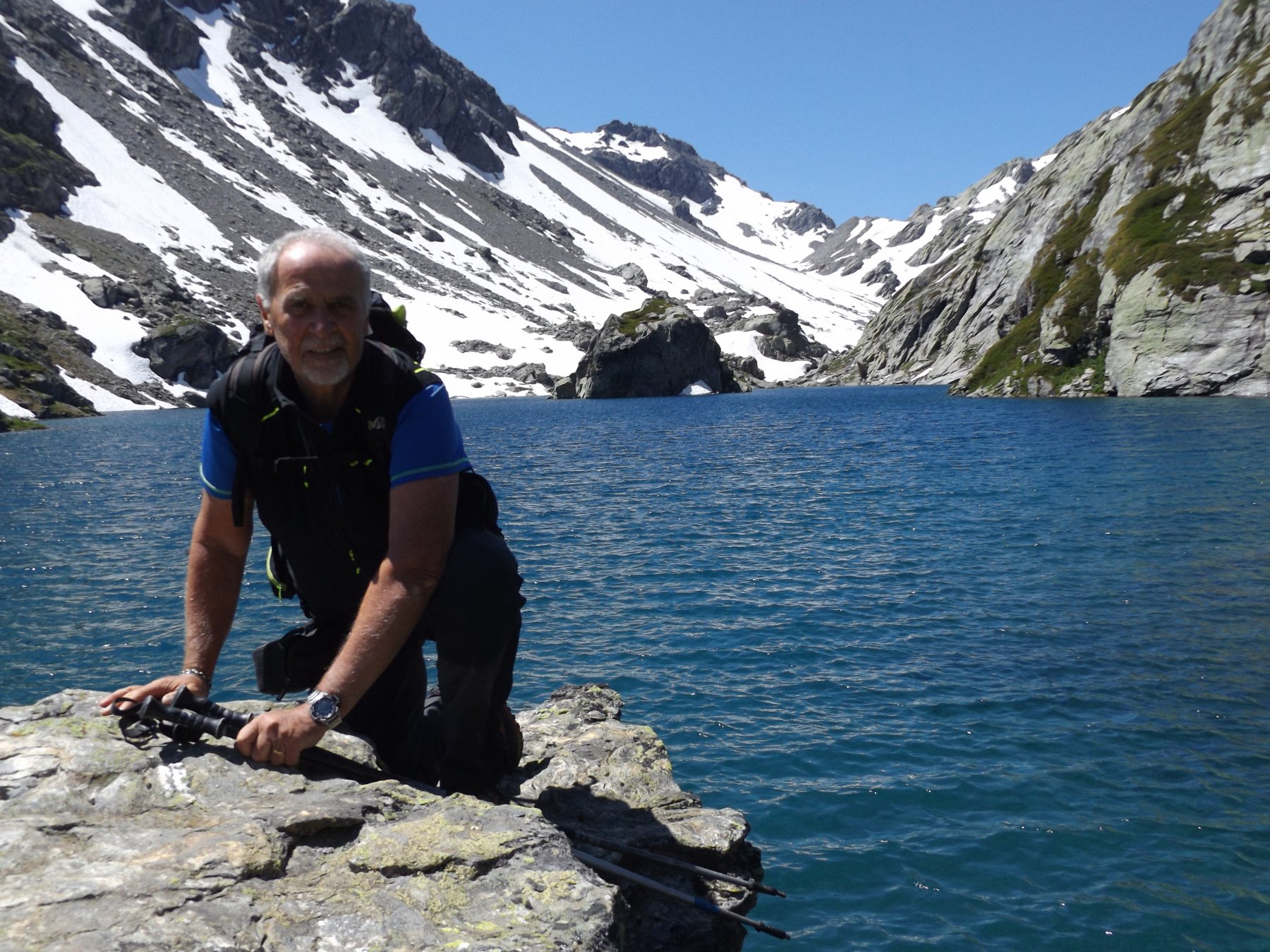Oggi bellissima gita con il CAI di Rivarolo – Dopo avere effettuato il giro dei laghi del Ruitor anni fa,oggi approfittando di questa gita vado a scoprire una zona che ancora mi mancava e che mi ero sempre ripromesso di visitare – Giornata fantastica sole a palla, non una nuvola e venticello frizzantino di sottofondo – Partenza da la Joux con 6°C, risaliti lungo il sentiero principale per le cascate del Ruitor e per il rifugio Deffeyes, pausa fotografica ad ogni cascata ad osservare questo spettacolo della natura (moltissima acqua dovuta al disgelo) ed ai vari punti panoramici con vista fantastica sul gruppo del Monte Bianco ed il Bianco con il Dente del Gigante a svettare- Dopo la 3° cascata al bivio segnalato da un ometto con paline siamo andati a destra risalendo il vallone di Bella Comba, il sentiero perde un pò di quota per giungere alla 4° cascata, poi si attraversa il torrente su un ponte di legno e si risale il vallone superando con due strappi i dossi rocciosi, superato il secondo il sentiero spiana ed entra in un bellissimo vallone chiuso dalle vette francesi – Dopo una lunga risalita si giunge al primo lago di Bella Comba di un blu cobalto, incastonato al fondo del vallone, si prosegue a mezzacosta sopra il lago fino a giungere al secondo lago con isolotto, una vera perla incassato tra pareti e nevai con in fondo il colle Lovie Blanche ed a sinistra il colle Tachuy con i suoi laghi . Visto i tantissimi nevai presenti non abbiamo proseguito (ritornerò per completare il giro fino ai colli ed ai laghi di Tachuy) – Pausa pranzo in un affranto tra le rocce in riva al lago – Gita splendida per i panorami che offre