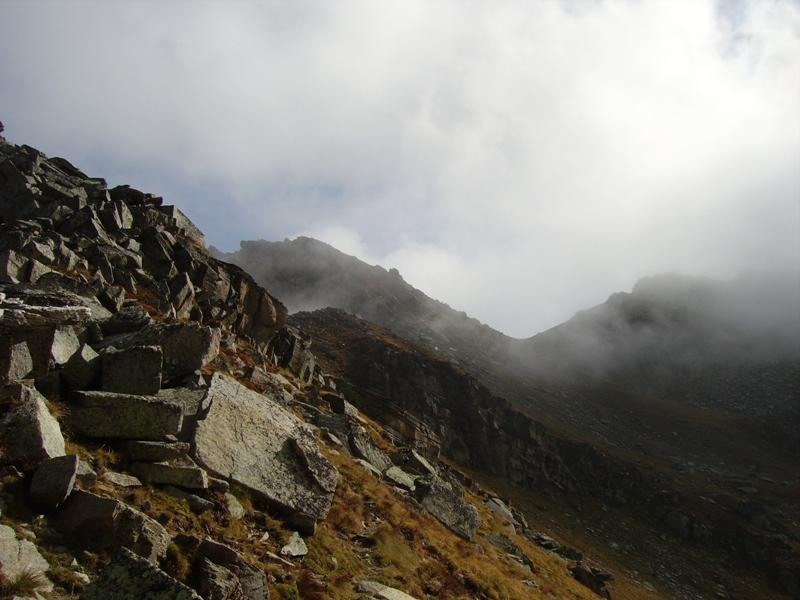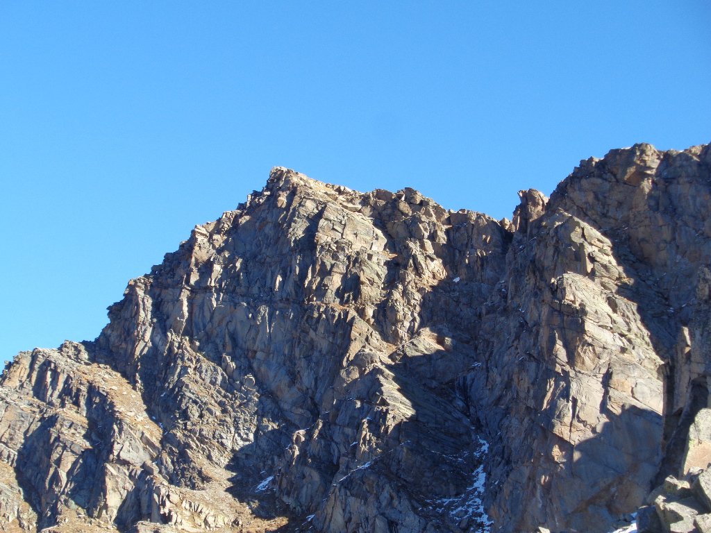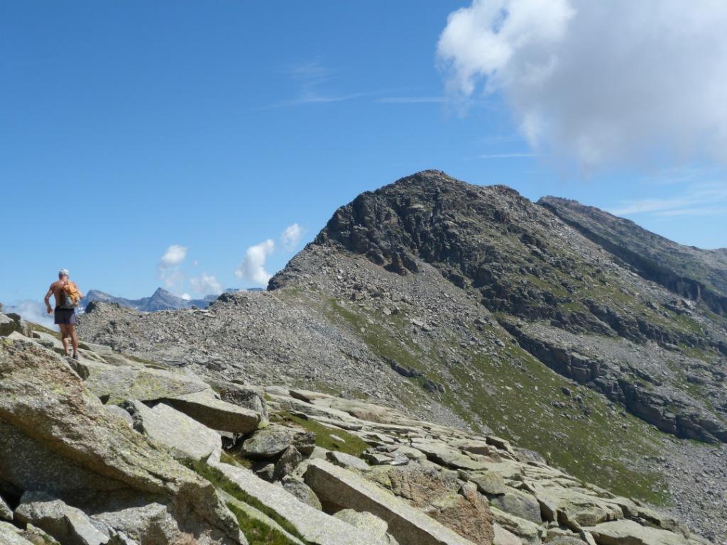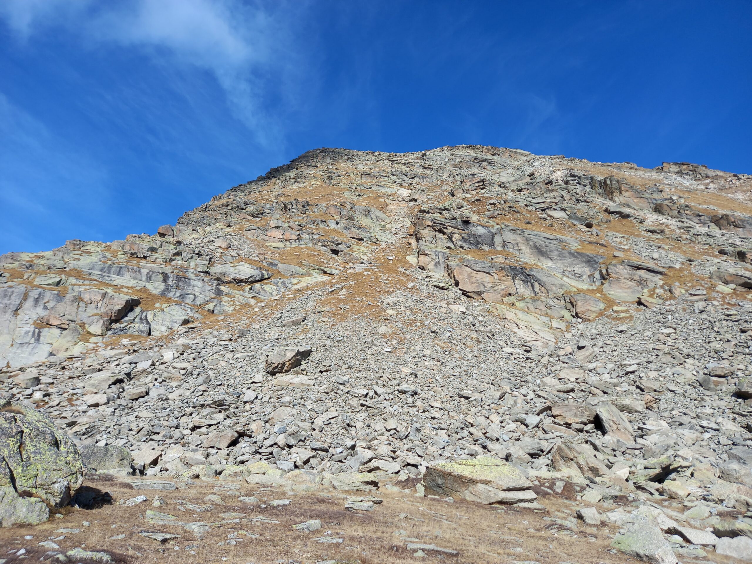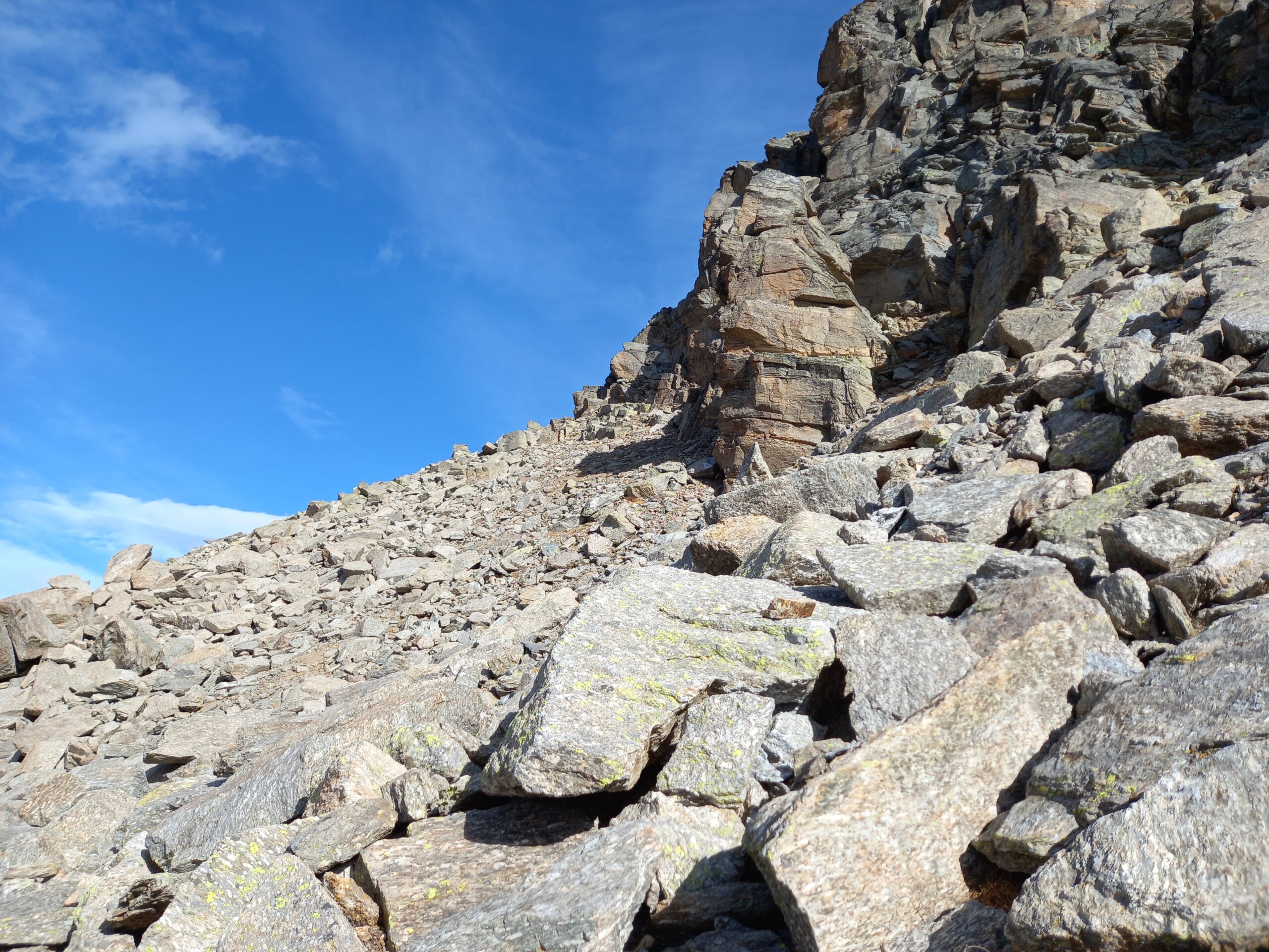 Da qui si seguono gli ometti che ben indicano il percorso, leggermente impegnativo ma mai difficile, che con facili passaggi di I e I+ su roccia solida e gradonata (si resta sempre sul versante di Ceresole) consentono di arrivare alla pietraia conclusiva, che si supera su una traccia senza problemi sino all’ometto della cima.