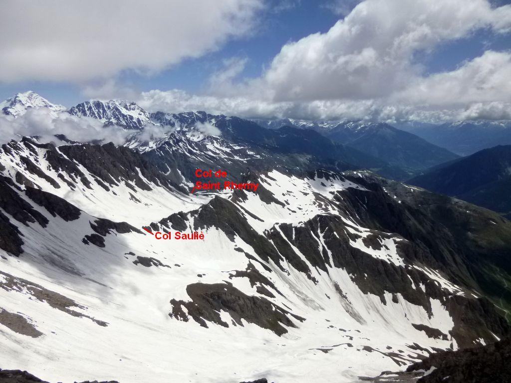 Dal colle attraversare in piano sul lato destro del vallone di Toula,lambendo la parete sud dell’Aiguille de Lesache. Lasciare a destra l’itinerario del Grand Golliat ,attraversare l’alta Comba di Toula e con un ultimo tratto ripido raggiungere il Col Sauliè (o des Envers o de Ceingles) alla quota 2817 m.