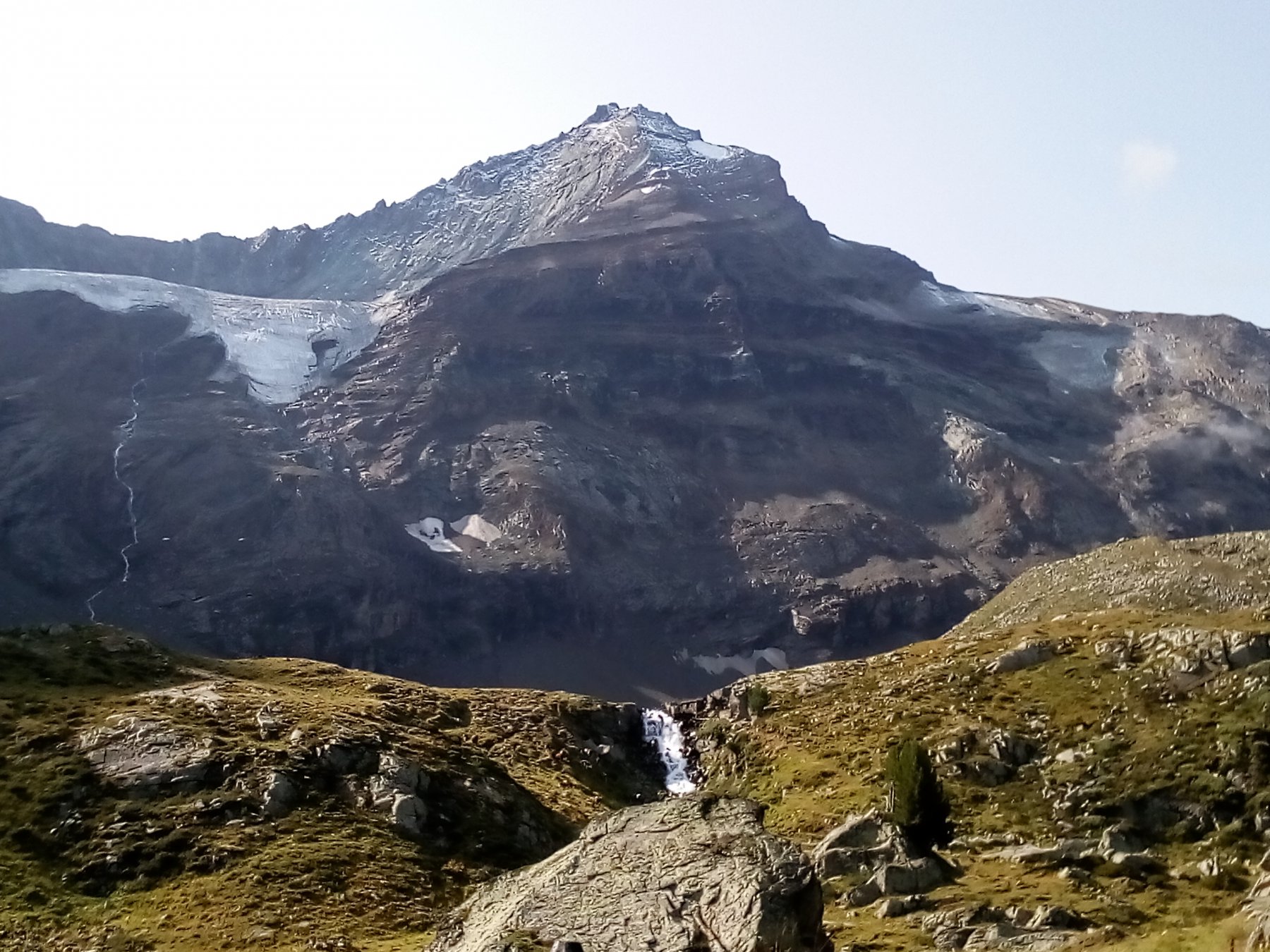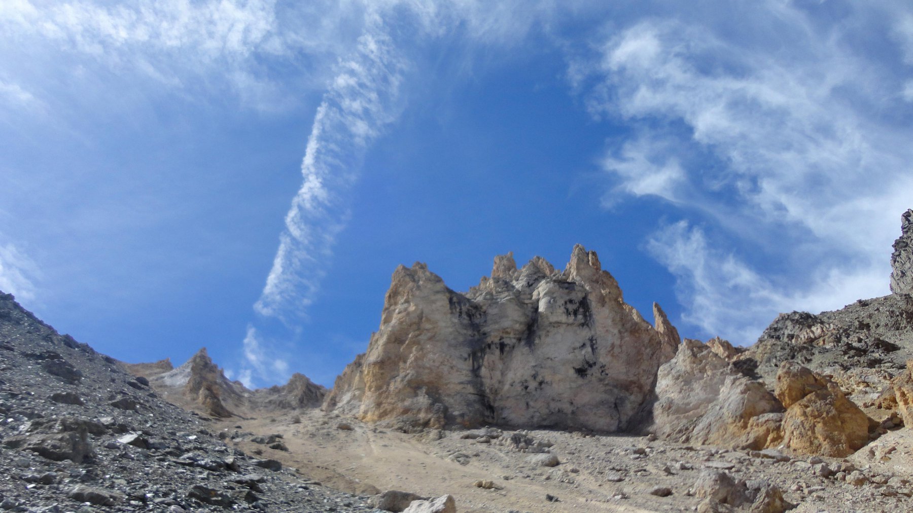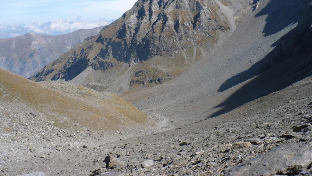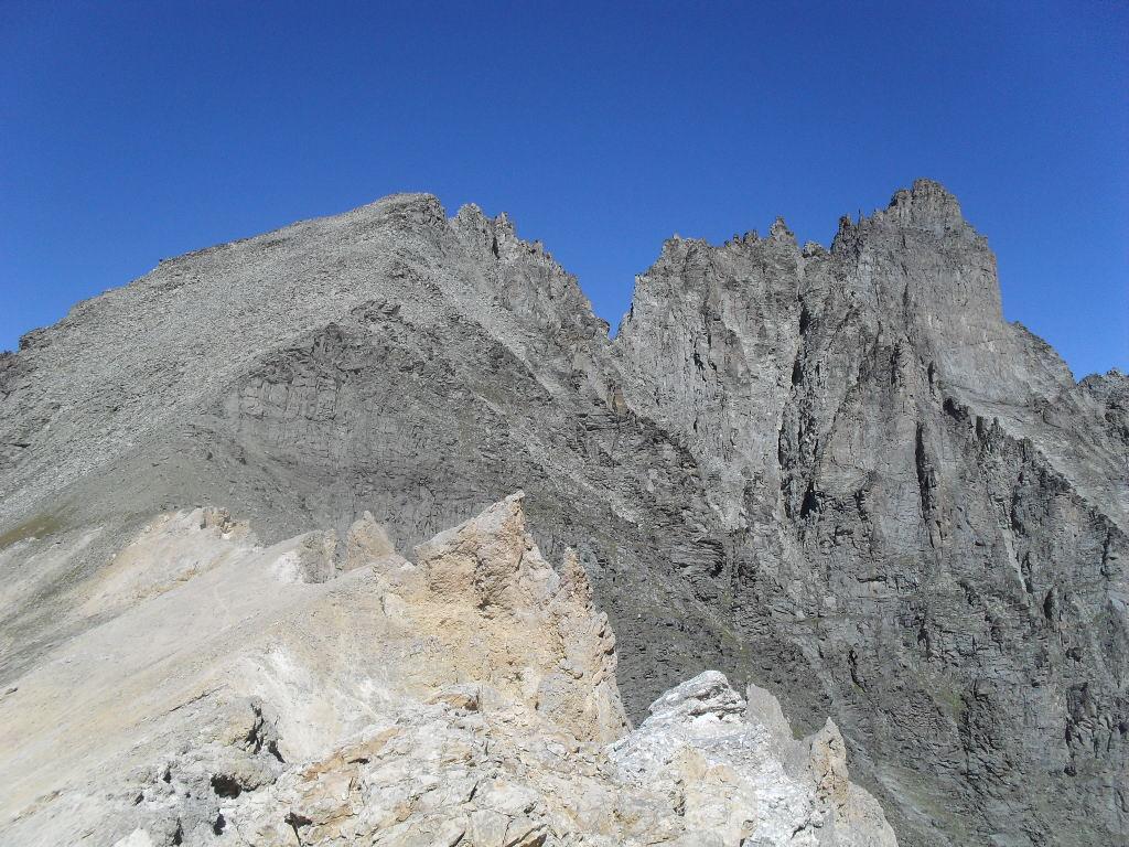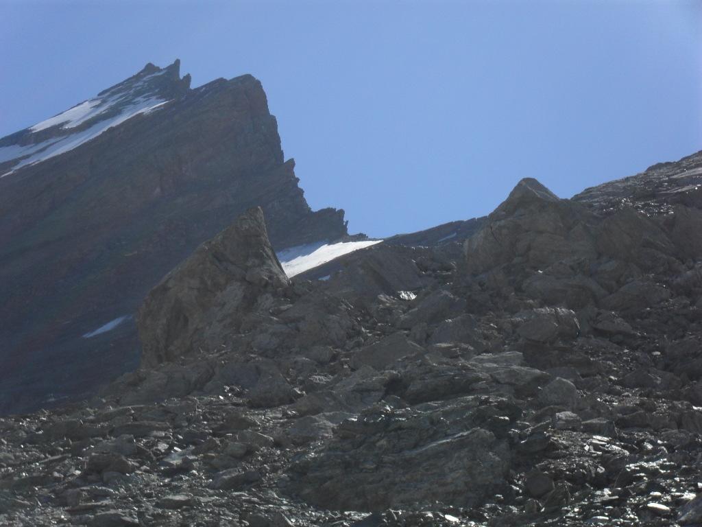 Si prosegue ,mirando a sinistra delle guglie color terra di siena,senza percorso obbligato ma molto faticoso specie nel tratto finale molto ripido e morenico,fino al raggiungimento dell’ometto del colle di Belleface